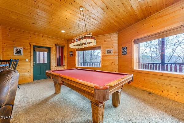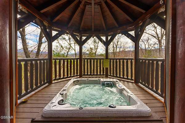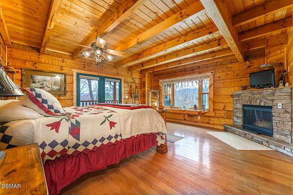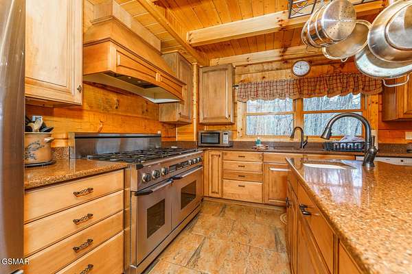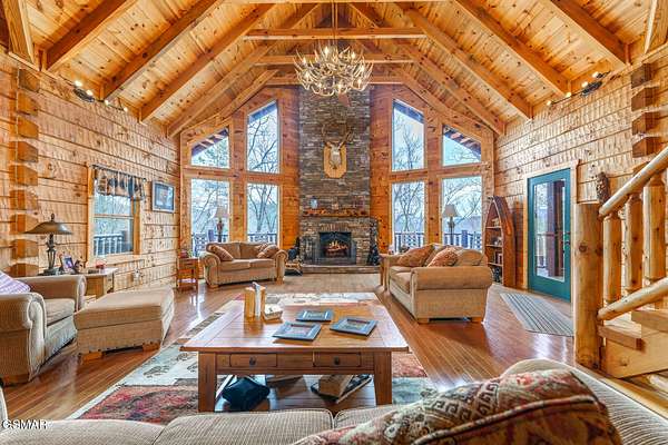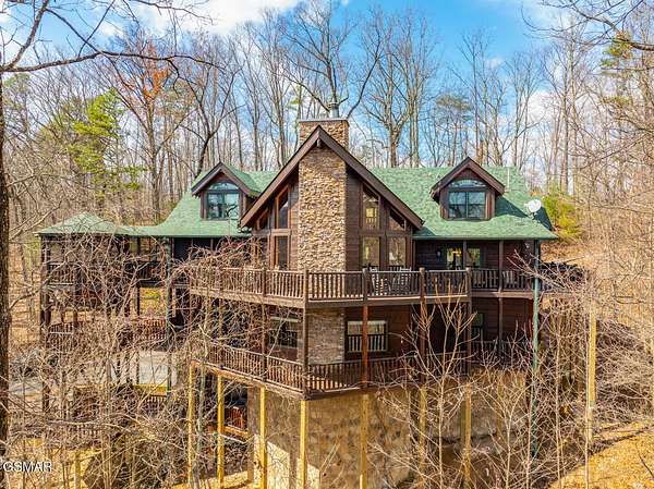 Absolutely stunning & beautifully furnished dream cabin located in the prestigious Homestead community in Wears Valley. This Heritage log home on 1.74 acres of wooded privacy, expertly crafted with hand hewn timber walls, rough sawn beams, rich hardwood floors, artist carved woodland creature posts, & a 2 story stacked stone fireplace, exudes grand luxury everywhere you look. From the chef's kitchen, featuring a $12,000 professional Dacor gas range, custom cabinets, island w/ 2nd work sink, & granite counter tops - to the cavernous downstairs entertainment area w/wet bar, pool table, air hockey, Ping-Pong, & movie station - to the elegant body jet shower, dual head shower, steam shower, & jetted tubs - to the 2 car garage & expansive storage spaces - to the sprawling trilevel deck w/ a custom gazebo hot tub to overlook all the mountain beauty Sevierville has to offer, this home is a truly unique masterpiece of function & design!