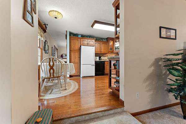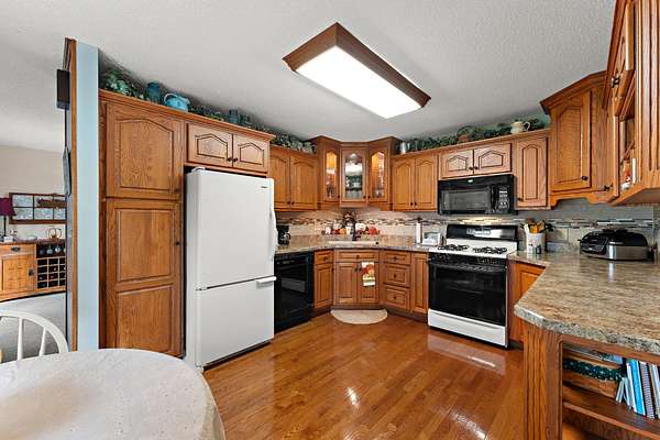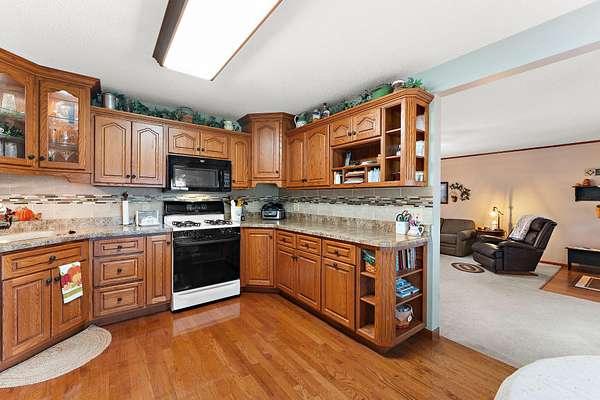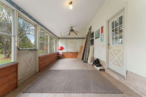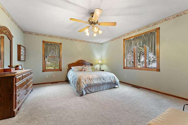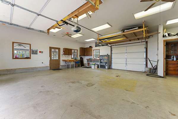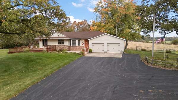 Country Charmer with a perfect blend of comfort, convenience, and amenities. This Ranch home is set back on nearly 2 ACRES and offers an abundance of desired features. Updated Kitchen with all appliances, sunk-in Living Room with gas Fireplace, Dining Room with French doors that lead out to an expansive Deck, and a spacious Primary Suite (part of a newer addition) with huge walk-in Closet and ensuite Bath. Downstairs, the walk-out Basement exits out to a large Patio (new Retaining Wall last year) and is partially finished to include a Family/Rec Room and an Office or possible 4th Bedroom. Outdoors, you'll find a beautiful and tranquil space along with a fenced-in back yard and a couple of bountiful fruit trees. The apples are APPLE-SOLUTELY delicious. Plus, in addition to the attached 2 1/2 car garage, there's a Detached 3 Car heated Workshop/Garage with an amazing 3 Seasons Room. Nestled quietly in a rural setting, yet minutes to town. Location is great! Schedule your showing today.
