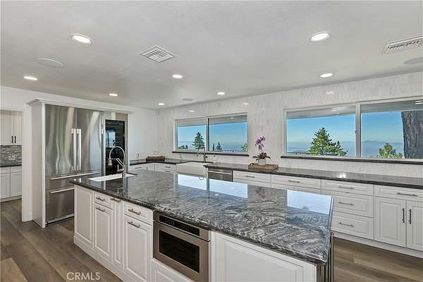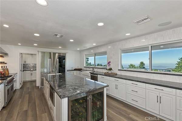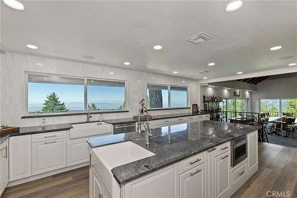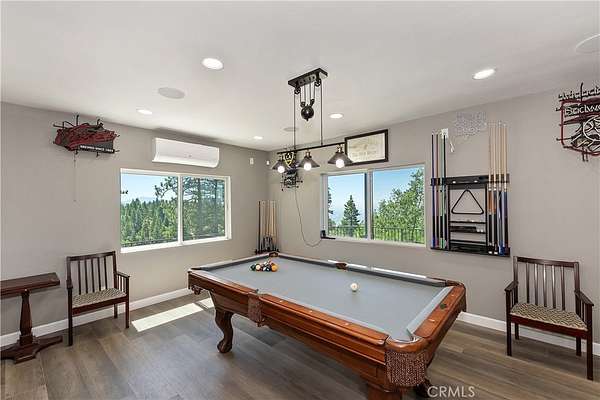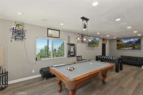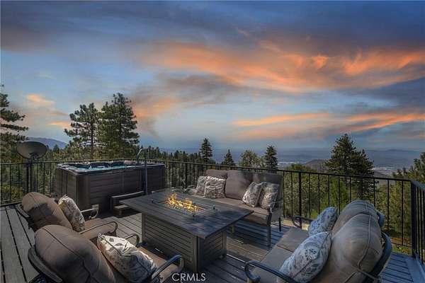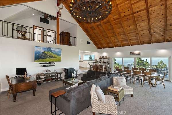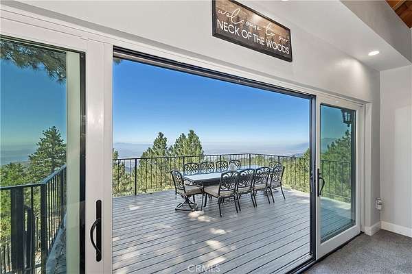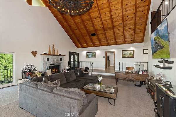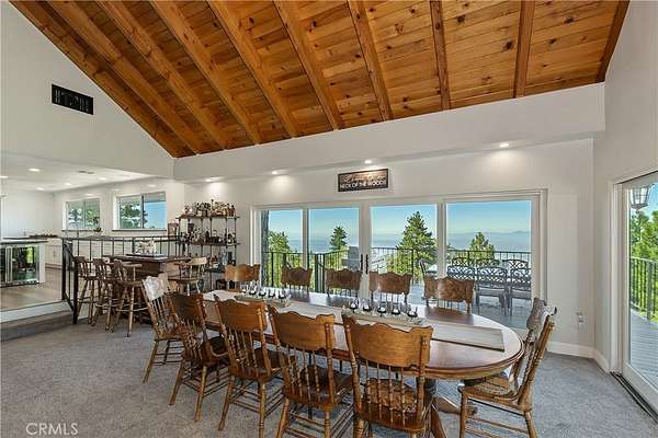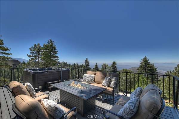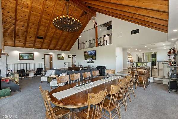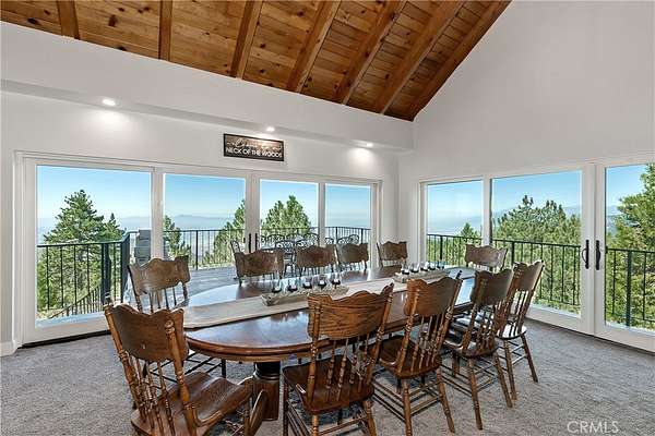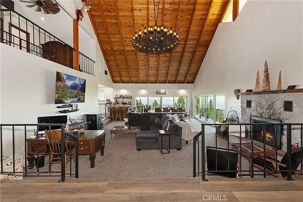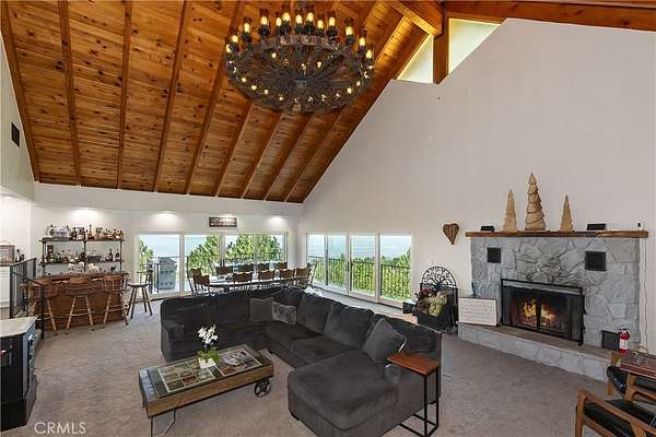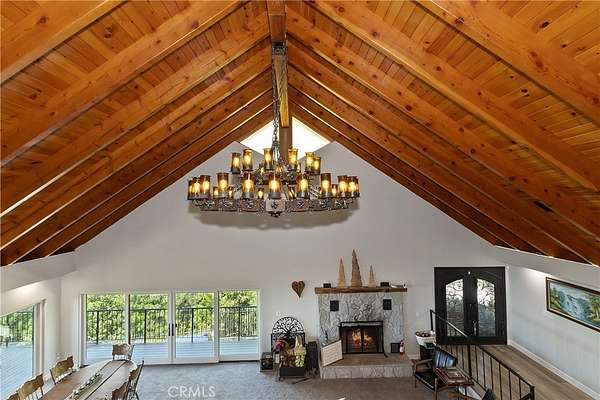 One of a kind spectacular grand valley view/city lights view lodge on approx. 6.82 acres of lush mountain paradise near Running Springs and Snow Valley Skiing! Over 5,200 sq ft of gorgeous luxury living space with dramatic greatroom open floorplan, high vaulted T&G wood ceilings and breathtaking million dollar valley views! 6 bedroom, 5 bathrooms, game room, bar area, laundry area, spacious top of the line chef's kitchen and more. Beautiful rock fireplace in the spacious livingroom. Oversized two car garage (approx. 934 SQ FT) with workshop area and 1/2 bath. Abundant driveway parking for 15+ cars, boat parking, RV parking...bring all your toys! New interior paint, flooring, updated electrical including full solar system, newer roof, new high efficiency heating/cooling throughout the home. New composite low/no maintenance siding. Ideal setup for a money making vacation rental. There are a total of 5 individual parcels with the potential for additional development or keep the way it is for your own private trails, orchard, vineyard, etc. The acreage is rolling with beautiful pines, oaks and cedars all around...perfect for exploring. This special home has been in the same family since it was built. This is a unique opportunity to begin creating special mountain memories, make your offer today!