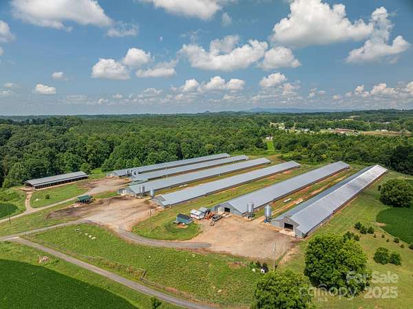 Excellent income-producing poultry farm on approx. 82+/- acres in Vale, NC. This Turnkey Operation includes 6 active broiler houses (Two built in 2007, three built in 2009, and final one built in 2010) currently integrated with Tyson and a 2 story 3BR/3BA with an office, main residence built in 2019 featuring 2700+/- sq ft HLA & 1600+/- sq ft unfinished basement! The land offers multiple potential revenue streams with row crop production, wooded acreage, and creek frontage. Strong potential for continued poultry production or diversification into other ag ventures. Ideal for investors seeking agri-business income, with residential and land value upside. Shown by appointment only.