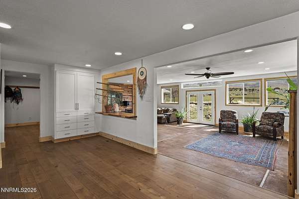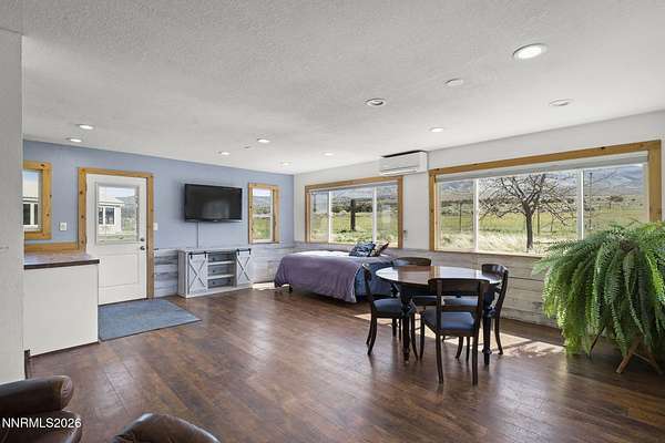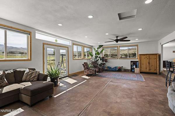 Sierra Spirit Ranch - A Rare Nevada Legacy Ranch Welcome to Sierra Spirit Ranch (SSR), a truly exceptional property tucked within a greenbelt of the Pinenut Mountains. This ranch includes water rights, 2 agricultural wells, fenced fields, Pinenut Creek, and a 360-degree view of the mountains and the Carson Valley. There is a sweeping view of the Sierra Nevadas to the West and the Pinenut Mountains to the East. Set on 21.7 private acres and surrounded by BLM land, this one-of-a-kind ranch delivers unmatched seclusion, sweeping views, and a lifestyle defined by beauty, freedom, and possibility. At an elevation of 5700', the property is 15 minutes from Gardnerville, accessed via a 3-mile county-maintained dirt road (Pinenut Road #2). Despite its peaceful remoteness, SSR is ideally located only 1 hour from Reno Tahoe International Airport and 45 minutes to Heavenly and South Lake Tahoe. Wildlife abounds, from a wide variety of birds to iconic wild mustangs that frequently roam past the fence line. Evenings here bring unforgettable sunsets and brilliantly starlit skies, while the surrounding landscape offers limitless opportunities for horseback riding, mountain biking, dirt biking, hiking, or off-road vehicle exploring in every direction right out the side gate. The lower 8-acre field currently brings in around $1000/month for horses and goats. The Ranch has just under 14 acre feet of water rights, making it a very valuable water rights property. Improvements and Residences Main Residence - 2680 sqft; 3 bedrooms, 2.5 baths, + bonus room This beautifully remodeled single level ranch home offers panoramic mountain views out every window. The home features an open-concept design with abundant natural light, engineered hardwood flooring throughout, and a spacious kitchen and dining area that flows into a stunning 680 sq ft family room. The 2 full bathrooms have heated tile floors. Each bedroom has mountain views. Renovation updates in 2020 include: new appliances, cabinets, engineered wood floor, James Hardie concrete siding, windows and roof. Guest House - 704sqft; 1 bedroom, 1 bath Fully remodeled in 2019, this charming guest home offers an open layout with mountain views and abundant natural light. Renovation updates include: new appliances, cabinets, counters, windows, heated tile in kitchen and bathroom, heat/ac split unit, and metal roof. RV Garage & Studio Sunroom - 1664 sqft Constructed with 2x8 walls for added insulation and strength, this versatile structure is divided into two expansive 52' x 16' spaces. The Studio Sunroom is a standout feature-bright, inspiring, and truly a must-see. Renovated in 2023 with new windows, siding, concrete flooring, and a metal roof. Workshop - 768 sqft An open, functional workspace with stunning Sierra Nevada views, upgraded in 2022 with new windows, siding, and a metal roof-perfect for projects, storage, or creative pursuits. Sierra Spirit Ranch is more than a property-it's a lifestyle. With major improvements already completed, you're free to focus on what matters most: gardening, ranching, recreation, or simply soaking in the peace and natural beauty that surrounds you. Enjoy morning coffee as wild mustangs pass by, and end your days with stunning sets followed by vast, star-filled skies. With abundant sunshine, fresh mountain air, and pristine spring water, this is a place to truly reconnect-with nature, with others, and with yourself.