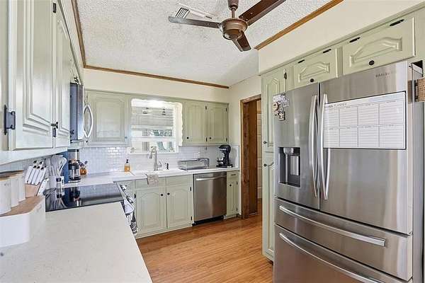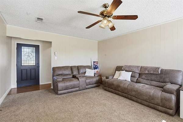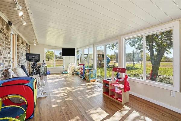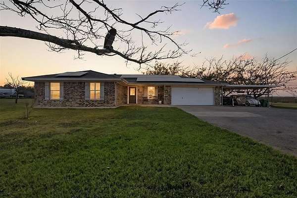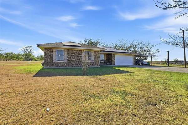 Cozy, country, charm! Take a look at this newly updated home located just outside of the city limits! This property boasts a cozy farmhouse aesthetic with modern conveniences, complemented by an expansive backyard perfect for relaxation or entertaining. The comfortable primary suite offers privacy and serenity. Both primary and second bathroom have been stylishly updated with modern fixtures, ensuring convenience for both family and guests. Off of the utility room, you'll see the large sunroom that could easily be a home office, workout space, or a child's playroom. The large backyard features a RV hook-up as well as a concrete slab all while offering ample space for gardening, outdoor activities, or simply enjoying the Texas sunshine. The two-car garage offers convenience and storage solutions, further enhancing the property's functionality You'll also notice the solar panels that will be paid off at closing. Peacefully situated in a location that offers the charm of rural living with close proximity to local schools, shopping, and dining, this home is a true gem for those seeking the tranquility of a small town with the comforts of a well-designed residence.