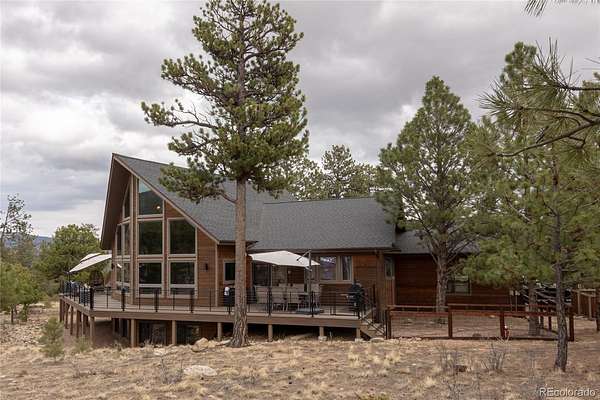 This stunning custom mountain home on National Forest Drive in Game Trail offers the perfect blend of privacy, comfort, and breathtaking scenery. Situated on 2.43 acres, the property provides a peaceful setting where you’ll regularly enjoy sightings of elk, deer, moose, antelope, and other Colorado wildlife. The main level has been thoughtfully updated, featuring rich walnut cabinetry in the kitchen that adds warmth and elegance. A generous center island creates the perfect gathering space, while the custom dining table and three lighted elk chandeliers (included) make entertaining both unique and memorable. Outdoor living is just as inviting, with an expansive wraparound deck offering two dining areas, complete with tables, chairs, large umbrellas, a fire pit, and an outdoor buffet; deal for enjoying mountain evenings. The family room showcases soaring vaulted ceilings, exposed beams, and expansive windows that frame spectacular views of Mount Columbia and the Collegiate Peaks. A cozy gas fireplace and engineered hardwood flooring complete the space. A charming loft above offers flexibility for an office, library, or additional living area. The primary suite is a true retreat, featuring private deck access and stunning views. The ensuite bath is beautifully appointed with extensive cabinetry, a deep soaking tub, and a zero-entry walk-in shower with dual shower heads. The lower level provides a second family room, a bonus space for hobbies or fitness, and two additional bedrooms, each with its own ensuite, perfect for hosting family and guests. A paved circular driveway, detached garage, attached garage, and additional paved parking areas offer convenience and ample space. Located just minutes from town and close to the National Forest, this home allows you to enjoy privacy, acreage, and endless outdoor recreation without sacrificing accessibility. Call now for a private showing.