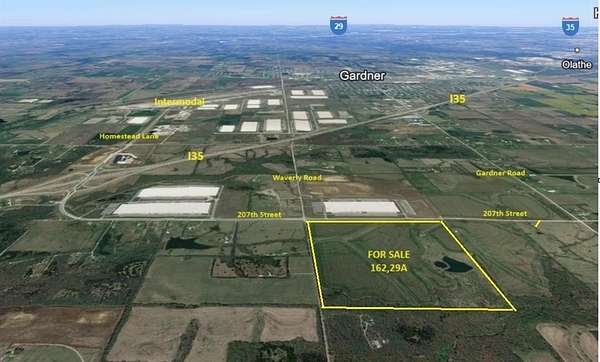 Est $121,017/mo1 Industrial Property in KC. 162.25 Acres. Approximately 1 Mile to I35 - Approximately 2.8 Miles to the BNSF Intermodal. Across the street from Hostess and Kubota Warehouses. Roads were built to support semi traffic - Homestead Bridge on Homestead was built to support Semi Traffic. Information on sewer, water and gas is available. Property can be annexed and rezoned to Industrial - process can take less than 90 days.