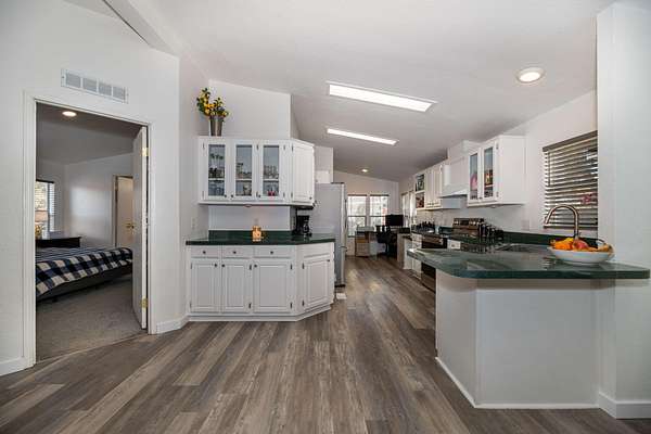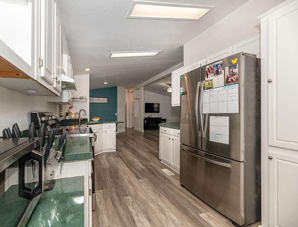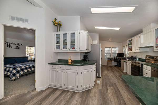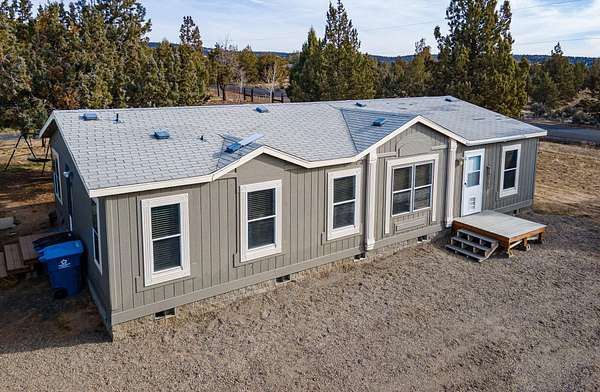 Imagine the freedom of open space and room to grow. This beautifully cared-for 2003 manufactured home offers comfortable living with an open floor plan, 3br/2ba and thoughtfully updated kitchen cabinetry--perfect for everyday life and entertaining. Set on a level, fully fenced 1.8 acres along a paved road, this property invites a variety of lifestyle opportunities. Whether you're hosting guests, traveling with an RV, or creating a private retreat, the full RV hookup with electric, water, and septic--complete with a separate gated entrance. There's room to accommodate long RVs with ease .A detached 2 car garage, insulated pumphouse, and a meticulously maintained shared well located on the property add to your peace of mind. With ample usable land and a versatile layout, this property is a place where you can truly put down roots, expand your vision, and build your dream.
