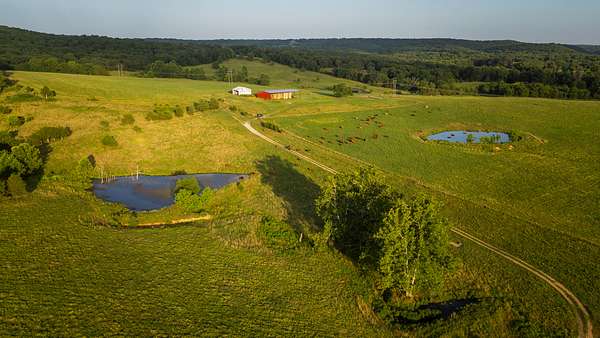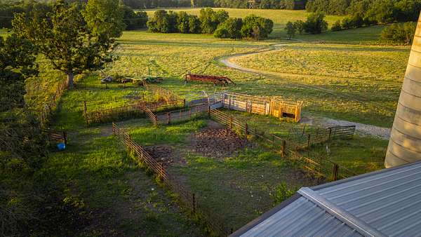 Osage Fork Farm is thoughtfully fenced and cross-fenced with sturdy pipe corners, 5-strand barbed wire, and high-quality gates, supporting a well-managed cattle and hay operation. The farm currently runs 150-175 cow/calf pairs and includes approximately 125 acres of fertilized and sprayed, high-yielding hay ground producing up to 800 large 4x6 bales annually with three cuttings per year. Multiple water sources, including Ritchie waterers, springs, and ponds, are strategically placed to support healthy livestock and allow for efficient weekly rotational grazing and self-sufficiency in production. If desired, the bottom fields could easily be converted into tillable acreage opening up even more agricultural opportunities.