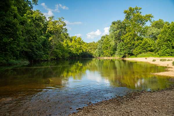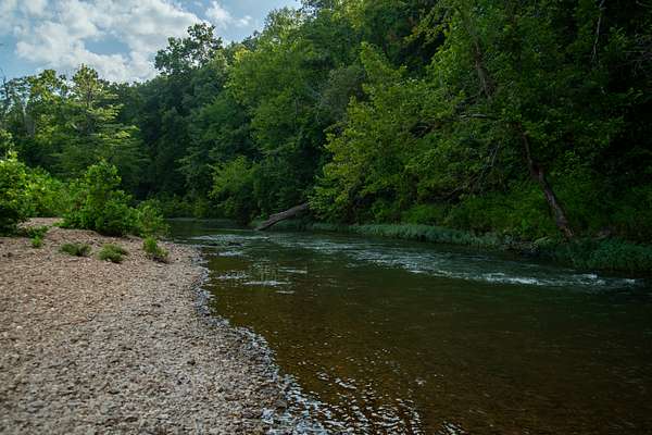 On the east side of the river, a cozy hunting cabin provides a perfect getaway after a long day of hunting or floating. Wildlife abounds--this region is known for producing whitetail bucks over 150" and supporting a thriving population of Eastern wild turkey. Morel mushrooms grow abundantly in the bottomland, adding to the bounty.