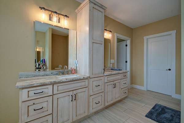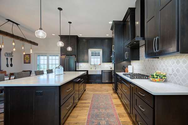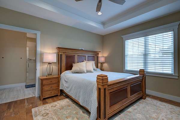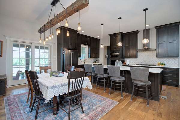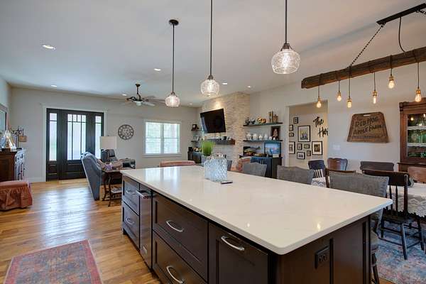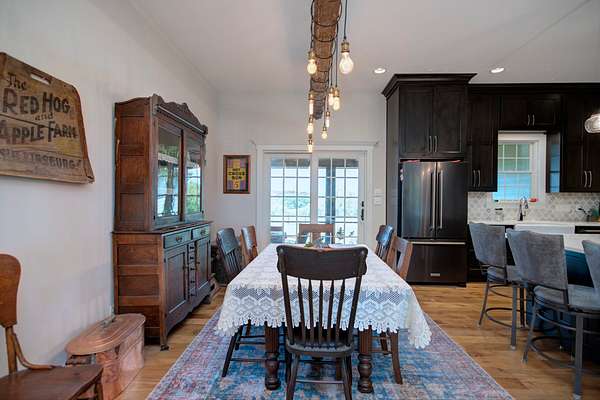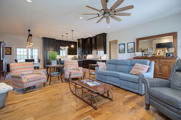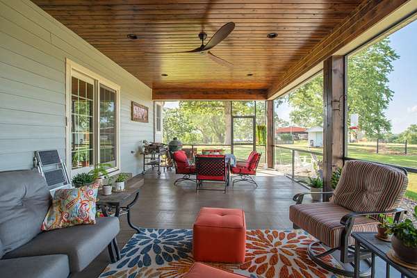 The main home, built in 2020, sits on a rise with views across the farm and river valley. It includes 4 bedrooms and 3.5 bathrooms, with 10-foot ceilings, hardwood floors, and Anderson windows throughout. The kitchen has alder wood cabinets, quartz countertops, a gas cooktop, an ice maker, and a large walk-in pantry. The primary suite features a 6-foot tiled shower with three shower heads and an on-demand gas water heater. The home is built with 2x6 exterior walls, full spray foam insulation, a 3/4 " subfloor, and Hardy siding. A Lennox gas furnace, water softener, and Starlink Internet provide essential utilities. The attached garage is oversized with an additional small door for UTV access. A climate-controlled gun room and garage offer secure storage, and a screened-in porch extends the living space outdoors.