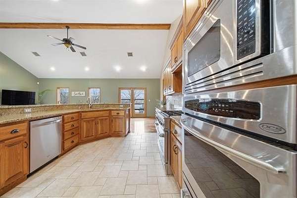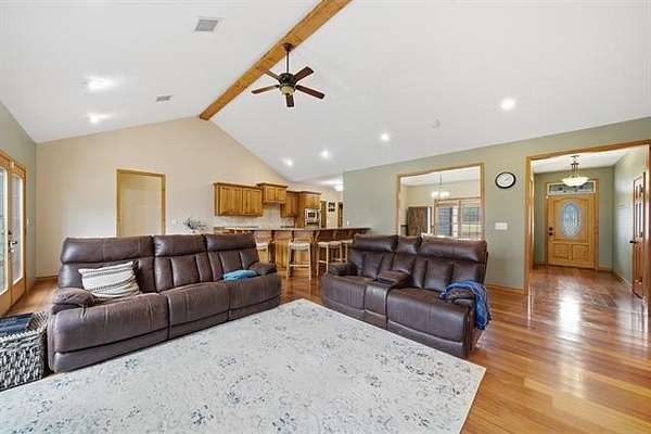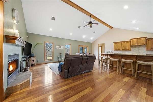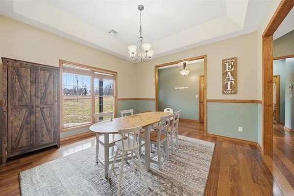Welcome to this private, fully fenced +/-50 acres of rustic, scenic beauty featuring two residences, stocked ponds, a creek, wooded areas, a basketball court, and a play set. The main home has a full walk-out basement and boasts five bedrooms and three full baths. The large living room opens to the impressive kitchen and formal dining room. Downstairs features a spacious living area, bedroom, and full bath, as well as a safe room, an abundance of storage, and bonus rooms. In addition to the main home, the property offers unlimited possibilities with a barndominium waiting for your finishing touches. It's versatile, flexible, and an excellent spot for guests, a home-based business, an income-producing Airbnb, or an exclusive retreat space nestled on this special property. This is more than just a home; it's a lifestyle with natural peace and privacy, thoughtful upgrades, and room to grow-ideal for those seeking a refined country retreat close to town and only 20 minutes from Grand Lake.