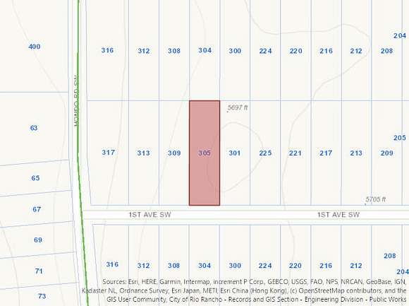 From Rainbow and Southern, take Rainbow north about 1.4 miles, to 1st Ave SW, then west to lot, about 4/10th of a mile, on the right. Use Lat/Long: 35.256779, -106.743229