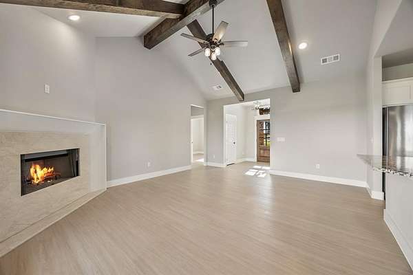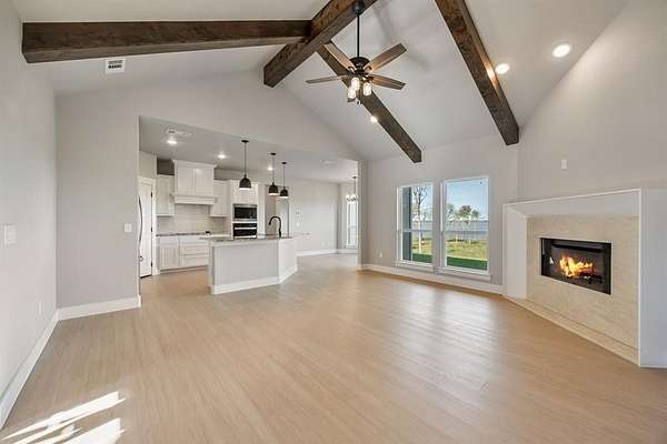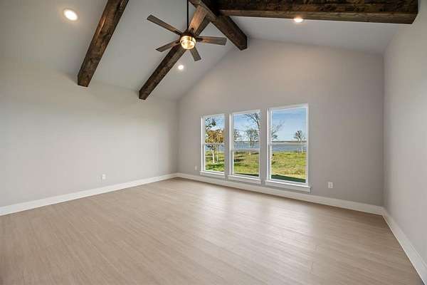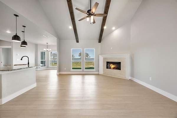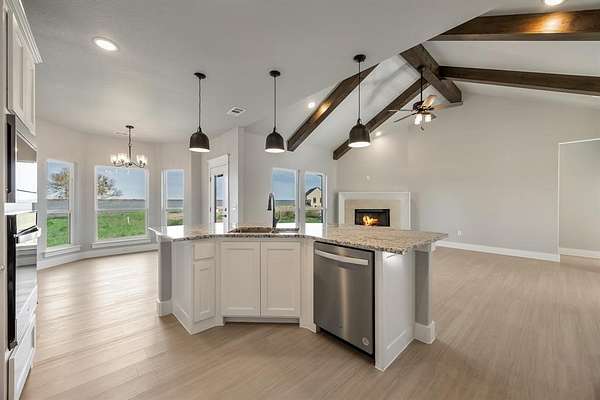 EXPERIENCE LAKESIDE LIVING AT IT'S FINEST! Stunning 4 bedroom, 2 bath new-construction home featuring serene lake views and direct water access. Set on 1.7 acres, this property blends modern comfort with timeless charm, finished in classic board-and-batten siding and surrounded by natural beauty. Step inside to an inviting open floor plan with vaulted ceilings, luxury vinyl plank flooring, and beautiful wood accents throughout. The eat-in kitchen is a true showpiece, complete with an oversized island, granite countertops, new appliances, and decorative lighting--perfect for everyday living or entertaining. Relax in the spacious living area with a wood-burning fireplace, or work from home in the designated office space with elegant French doors. The split floor plan provides added privacy, leading to a luxurious primary suite featuring vaulted ceilings, an oversized en-suite bath, dual sinks, a separate garden tub, and a massive walk-in closet with extensive built-in storage. Enjoy the ultimate lake lifestyle with lake access granted by SRA leaseback, giving you the opportunity to build your own dock and take full advantage of watersports, fishing, and year-round recreation. A rare combination of luxury, acreage, and lakefront opportunity--this property is truly made for living and entertaining. Schedule your showing today!