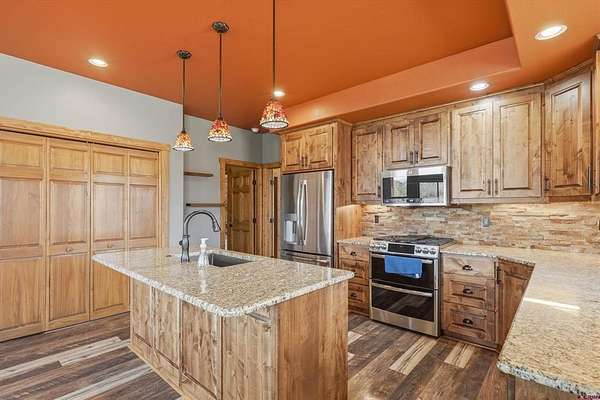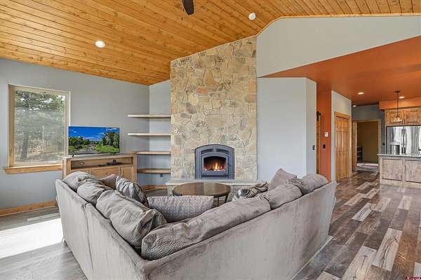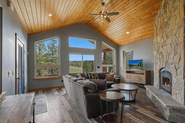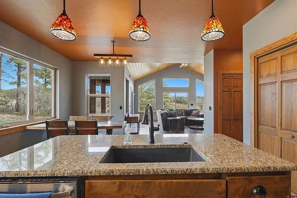 Kalei Pitcher, Jann C Pitcher Real Estate, CELL: 970-759-8165, kalei@janncpitcher.com, janncpitcher.com: Welcome to your mountain retreat at 305 Crestview Drive in beautiful Pagosa Springs, Colorado. Set on 8.64 acres among towering pines, this nearly new, single-level home offers privacy, convenience, and stunning views toward the backside of Wolf Creek Ski Area.Inside, you’ll find a bright, open-concept layout designed for comfortable living and easy entertaining. The spacious living area features a cozy wood-burning stove, while large windows bring in natural light and frame the surrounding landscape. The kitchen and dining areas flow seamlessly, creating a functional and inviting space.This barely lived-in home includes well-appointed bedrooms and bathrooms, all on one level for ease and accessibility. Step outside to a covered patio—perfect for relaxing, entertaining, or taking in the peaceful mountain setting.Additional highlights include a detached 3-car garage with an extra carport ideal for a Sprinter van, city water and sewer, and no HOA. Located just minutes from town, this property offers the perfect balance of seclusion and convenience.Whether you're seeking a full-time residence or a Colorado getaway, this property delivers the best of mountain living.