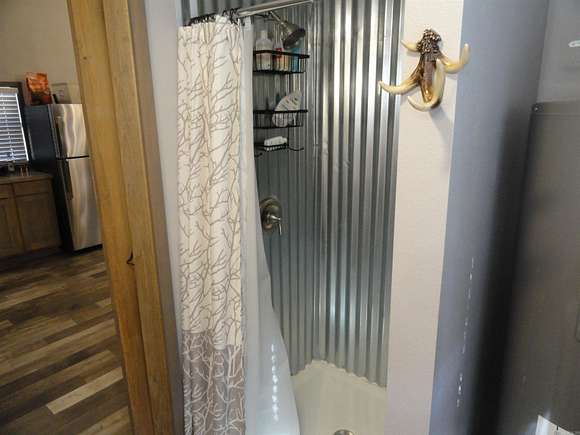 - Dryer-Stays, Kit Counter-Formica, Walk-In Shower, Washer-Stays, Water Heater-Electric, Window Treatments