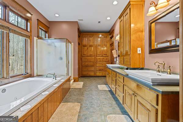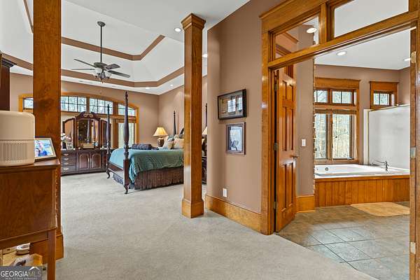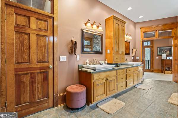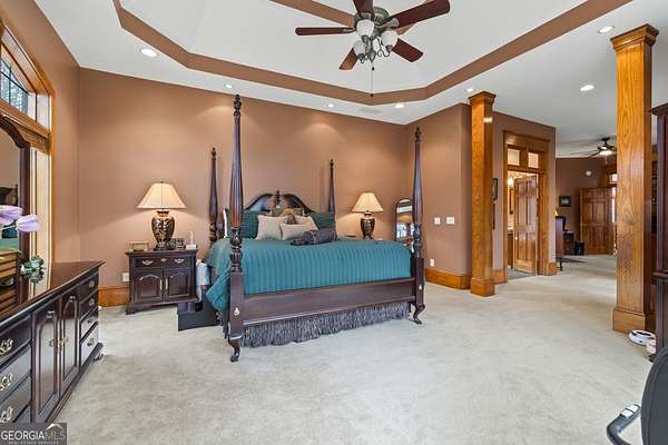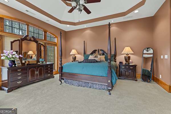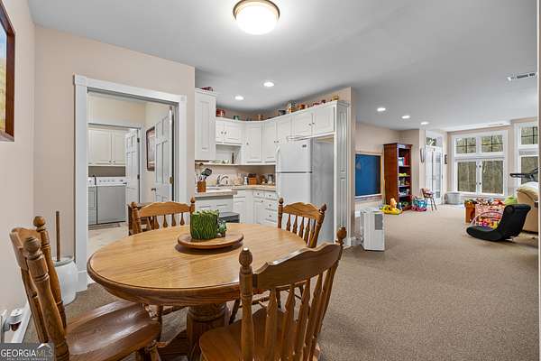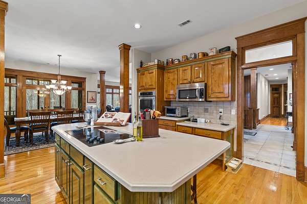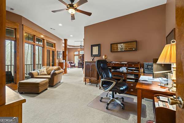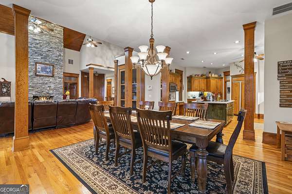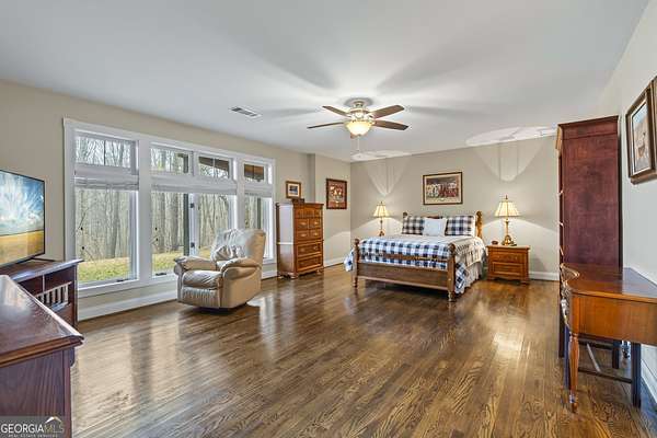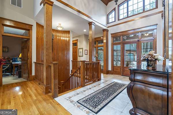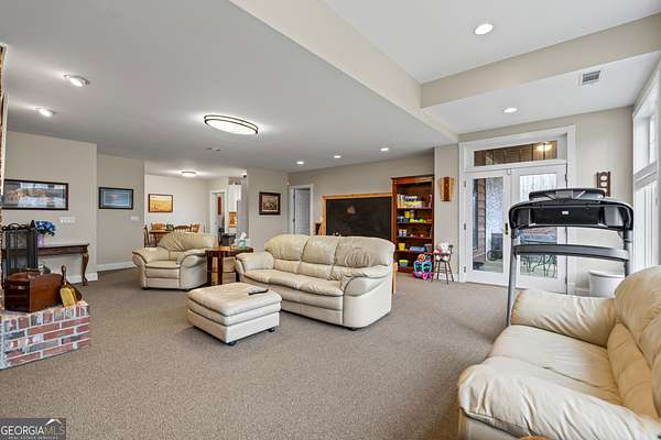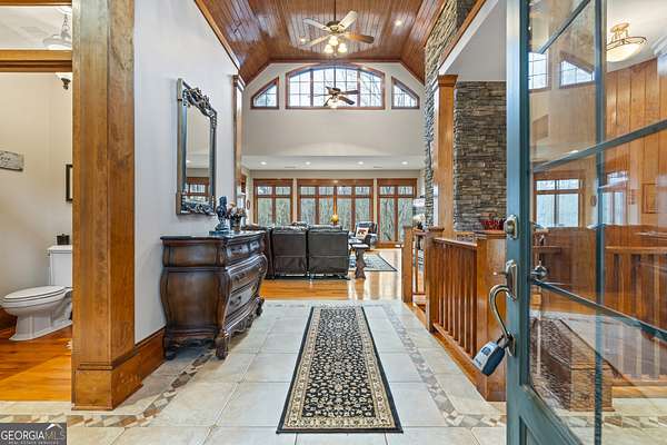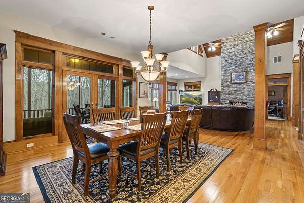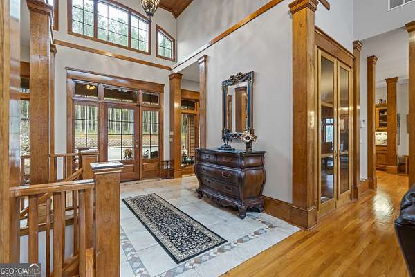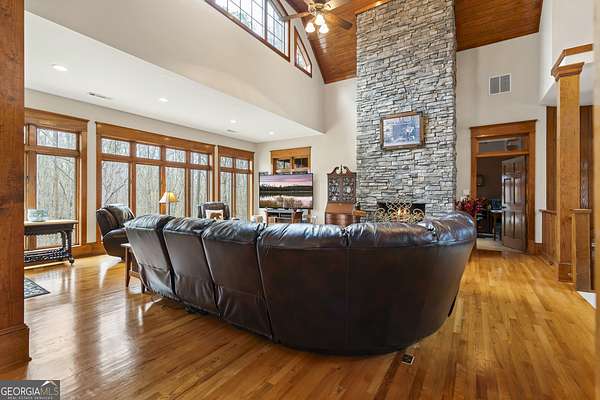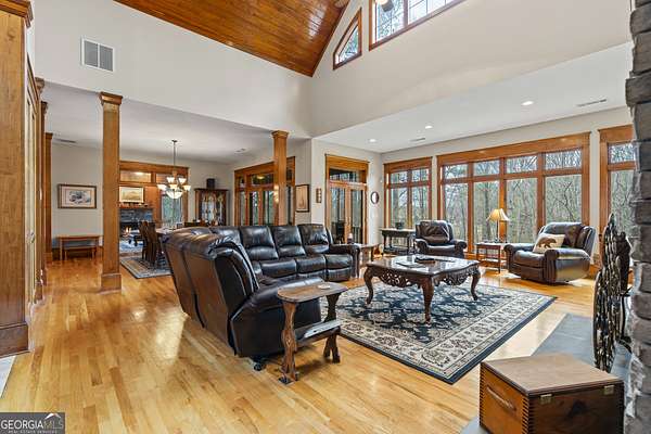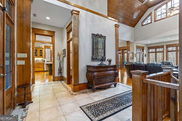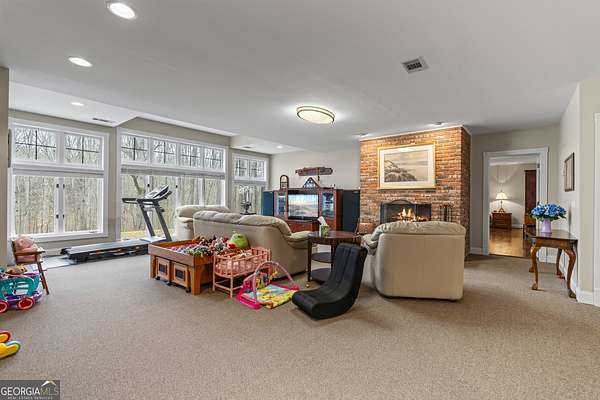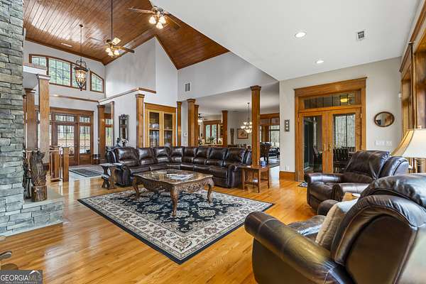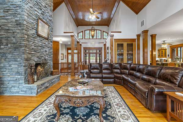 Welcome to this exceptional custom estate situated on over 5 private acres, offering an extraordinary combination of luxury, space, and thoughtful design. This impressive 6-bedroom, 5-bath residence was built for both refined living and seamless entertaining. The expansive primary suite serves as a true private retreat, complete with its own dedicated office/library - ideal for working from home or enjoying quiet moments away from the main living areas. At the heart of the home, the chef's kitchen flows effortlessly into the open family room, creating a warm and inviting central gathering space. A cozy keeping room, screened porch, and separate grilling porch extend the entertaining possibilities, allowing you to enjoy indoor-outdoor living year-round. Each bedroom offers generous space and privacy, with well-appointed bathrooms designed for comfort and convenience. The fully finished terrace level provides incredible versatility, featuring a second living room, full kitchen, two bedrooms, and two bathrooms - perfect for multi-generational living, long-term guests, or a private in-law suite. Car enthusiasts and those needing additional storage will appreciate the rare six-car garage capacity, with both a three-car attached garage and a separate three-car detached garage - offering ample space for vehicles, recreational equipment, hobbies, or workshop potential. A covered back porch overlooks the private backyard, creating a peaceful setting surrounded by nature and open space. This is more than a home - it is a private estate designed for comfort, flexibility, and elevated everyday living.