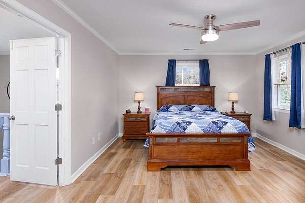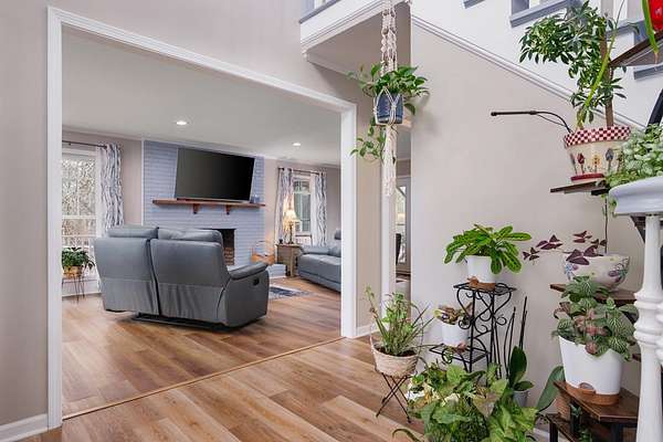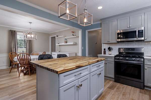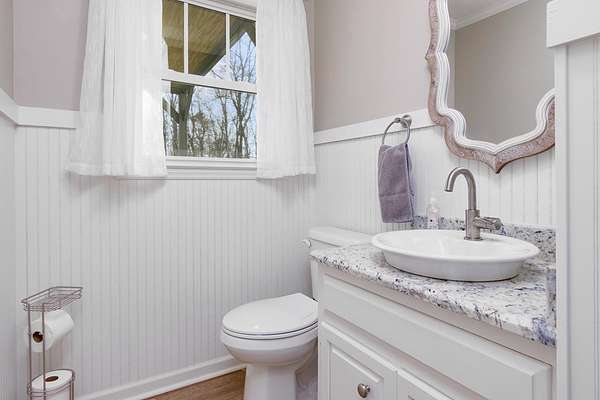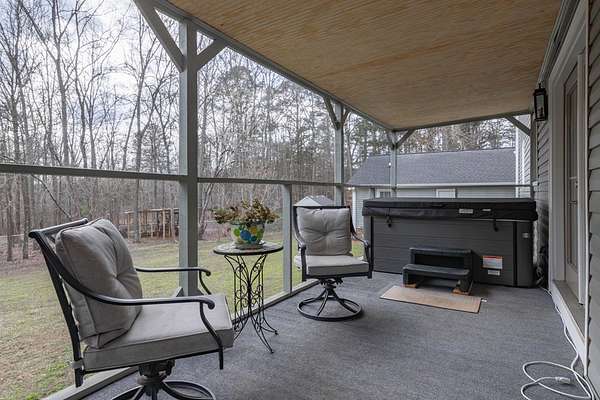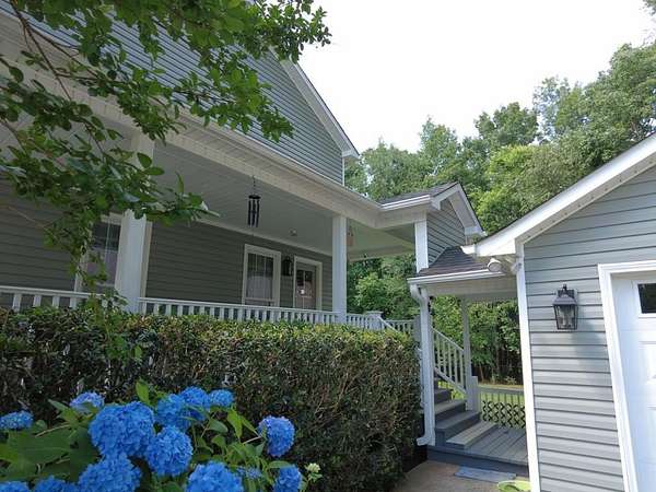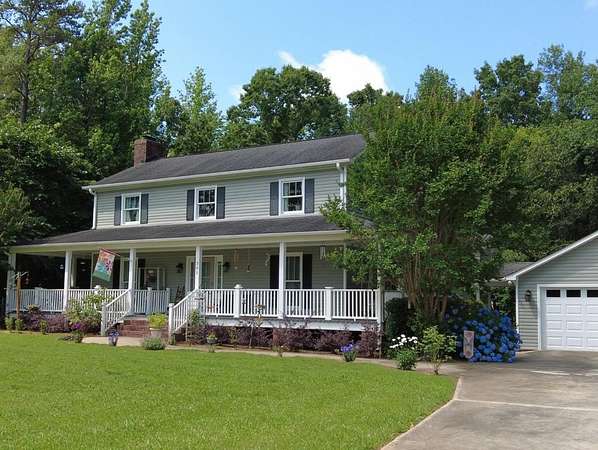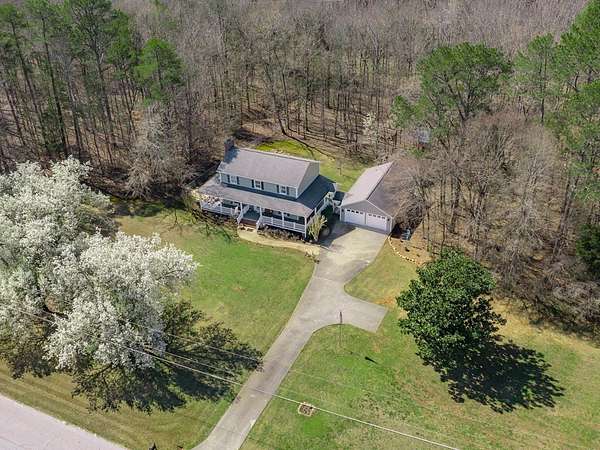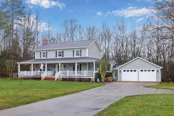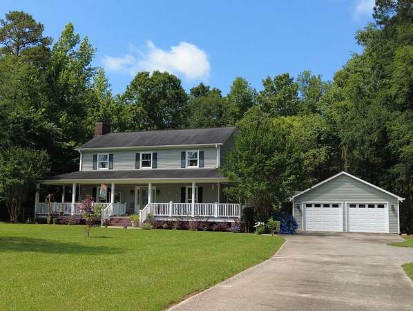 Sitting on 4.5 acres in the sought-after Dalewood Estates, this property offers a peaceful country vibe just minutes from town. Carefully maintained, it welcomes you with a manicured yard, wraparound porch, and two-car garage. Inside, a grand two-story foyer opens to a cozy living room with a wood burning fireplace. The kitchen is a dream for any home chef, with soft-close drawers, gas range/oven, newer stainless-steel appliances, a butcher block island, granite countertops, pantry, and a spacious dining area perfect for family meals. Upstairs, the master suite features a large walk-in closet and a full bathroom with comfortable-height counters, along with two more bedrooms and a full bath. The wraparound porch has a screened section and a hot tub for relaxing evenings. The extra-deep garage doubles as a workshop or man cave, complete with a full bath and utility sink. The partially fenced yard is perfect for kids and pets, plus there's a small storage 8 x 10 shed. Bonus features include a new hot water heater, tankless water heater in the garage, insulated windows, two newer HVAC units, LVP flooring, pumped septic tank, new well pump, roof warranty, recent survey, and a natural gas line on the rear porch for summer grilling or winter warmth. Full of charm and character, this home is ideal for anyone wanting space and a serene lifestyle.