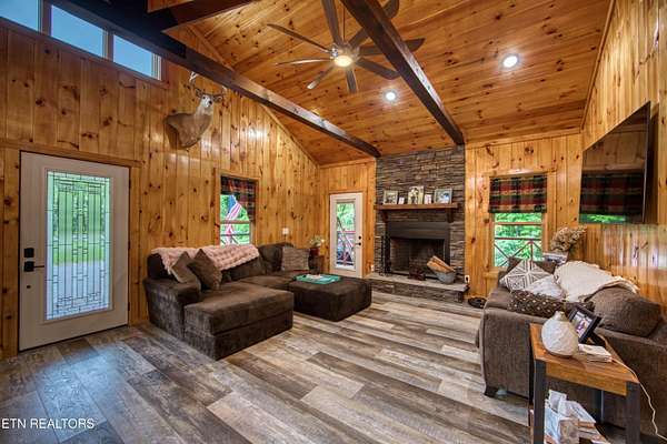 Quality Built cabin style property in the WHITE OAK Equestrian community. 8-10 Miles of community horse trails with a DEDICATED trail that takes you into the BIG SOUTH FORK NATIONAL PARK which has 225 miles of dedicated Horse Trails. Covered decking on both Front & Back of this home. Cathedral Vaulted ceilings in the Living room with ARCHITECTURAL BEAMS. Stacked Stone wood burning fireplace. WHOLE HOUSE GENERATOR. Hickory cabinets & Granite counters in the Kitchen as well as a serious Island with copper colored sink. Accent counter height windows in the kitchen which are a major part of this designer designed Home. All doorways & Hallways are handicap accessible. Trey ceiling in the Master bedroom as well as his & hers walk in closets. Walk in shower with RAIN GLASS. NO ASSOCIATION FEES HERE. High Speed Internet Available. This property has a $65,000 potential Air B&B INCOME in this community.