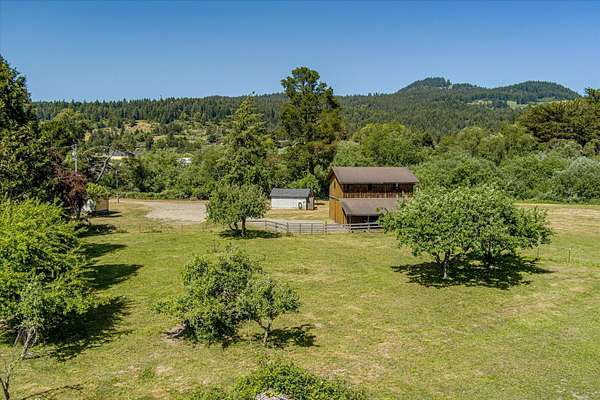 Est $5,926/mo~5-acre Blue Lake land, first time on the market~!! Ag-zoned, just steps from Downtown, this private mini-ranch boasts sweeping views, a barn, two outbuildings, and two bathrooms-perfect for family, farming, or livestock. With city water, septic, 60 Amp residential power & 3-phase 200 Amp Ag PG&E power, plus natural gas onsite, it blends rural charm with central location. Ready for your vision, this expansive property offers the ideal canvas to build your dream home and create a legacy in the heart of Blue Lake.
