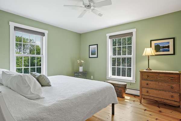 AMAZING VALUE, STEP UP AND SAY... WOW! Nestled on a quiet country road, this beautifully maintained, custom-built house (circa 2001) offers peace, privacy & charm. $76,000 price drop from original list price. Owner-owned solar panels cover all electrical needs. Current owner pays $0.00 for electricity & $15 monthly to Eversource for line usage. Exterior freshly painted in 2023, leathered granite countertops in kitchen with new stove & microwave. Shiny Southern Yellow pine floors throughout too, all in great condition. House sits well off the road on 2 open acres, mature perennial gardens & privacy. Natural light pours through generously sized windows. Spacious eat-in kitchen flows seamlessly into the living & family rooms, ideal for entertaining & everyday living. A tiled, open sunroom w/a cozy propane stove can be used year-round. Views to peaceful gardens and outside campfire area. Stone patio. Radiant heat warms the entire first floor, while baseboard heating warms the upstairs. The family room centers around a large stone wood fireplace as a favorite gathering space. Upstairs bedrooms are generously sized, w/both bathrooms being full, each having double sinks! Nearby downhill skiing, two local lakes, an 18-hole course with restaurant/pub, 3 more eateries & multiple town-owned hiking trails. 6 minutes to Harvester grocery & 12 more to Shaws in Peterborough as HUB w/boutique shopping & much more!