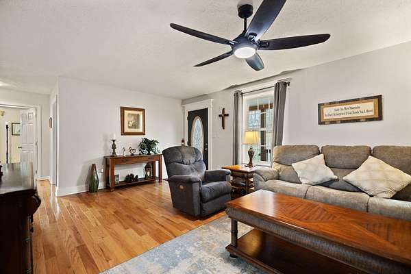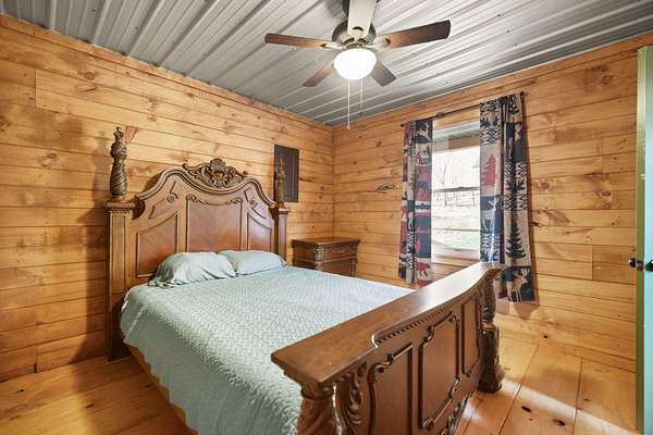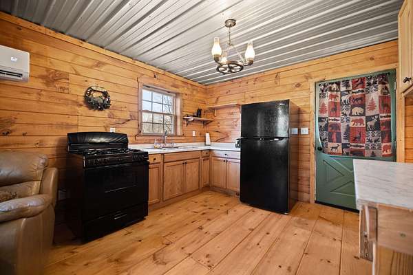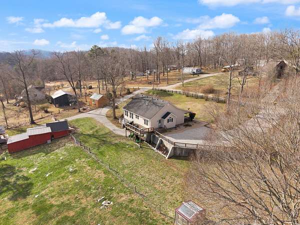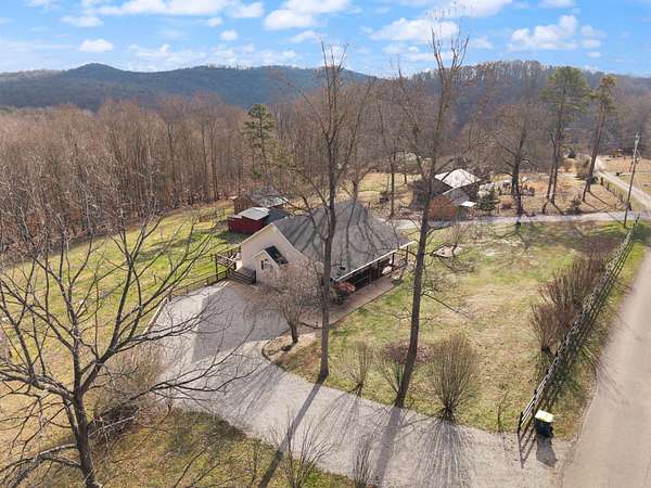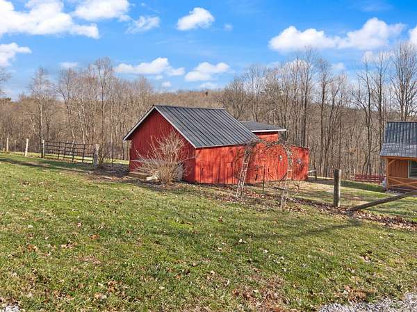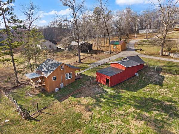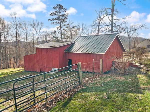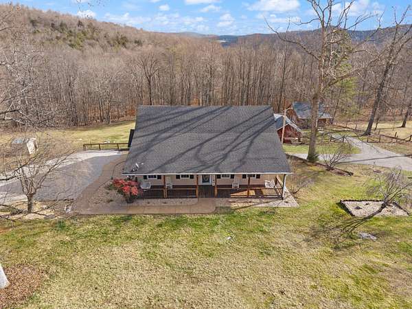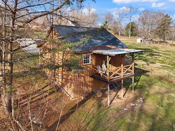 Well-maintained and versatile, this property includes a 3-bedroom, 2-bath main residence offering approximately 1,700 square feet of all main-level living, along with a separate 1-bedroom, 1-bath cabin with loft, providing flexible living or rental opportunities. The cabin is positioned for potential short-term rental use, with proximity to Renfro Valley, Lake Linville, and nearby entertainment. The main home features a spacious kitchen with walk-in pantry, generously sized bedrooms, and a primary bedroom with private ensuite bath. Wide doorways allow for ease of access, while an oversized crawlspace with exterior walk-in access offers additional storage and convenient maintenance access. Situated on 6.39 fenced acres, the property offers a combination of open pasture and wooded areas, suitable for horses, livestock, or hobby farming. A creek runs through the property, enhancing the rural setting. Multiple outbuildings include a barn, workshop, chicken coop, and additional storage structures. The acreage and improvements support a variety of residential, agricultural, or multigenerational living needs, with added flexibility for rental or Airbnb use.