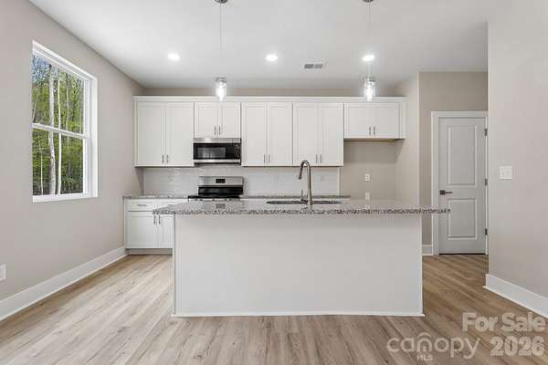 Welcome to your Brand New Home on a large 2+ acre, private lot and right across the street from High Rock Lake!! This new construction, 2-story home sits in a quaint neighborhood. A covered front porch greets you as you walk into the front foyer of the Home with a private study located to the left of the entrance. LVP flooring throughout the main level leads you through the open floor plan with a vast Living Room & gourmet Kitchen with soft close cabinets and drawers, a huge kitchen island, granite countertops, Stainless Steel appliances, Pantry, & more. Venture upstairs where you will find four spacious bedrooms with every bedroom having a walk-in closet. Primary Bedroom has its own Primary Bathroom with a beautiful frameless, tiled Shower, double vanity with plenty of countertop space and cabinets & drawers, and water closet. The back patio allows you to take in the privacy of the mostly wooded back yard and all of your acreage! Boat slips, beaches and other access located a few minutes away onto High Rock Lake!