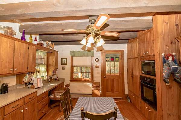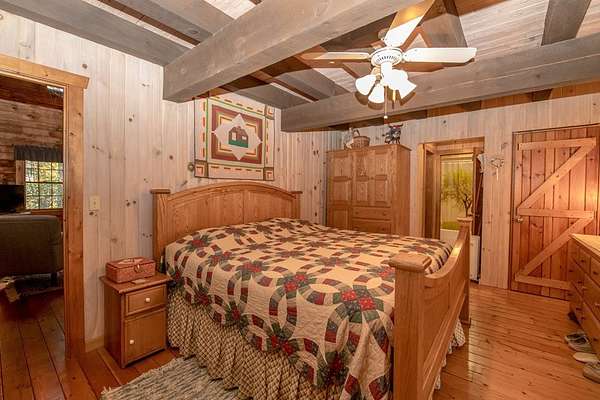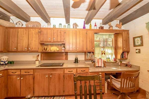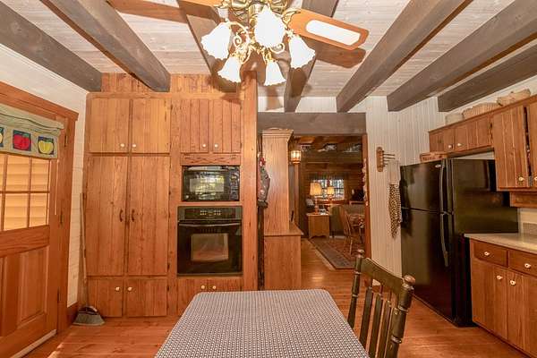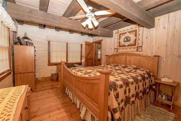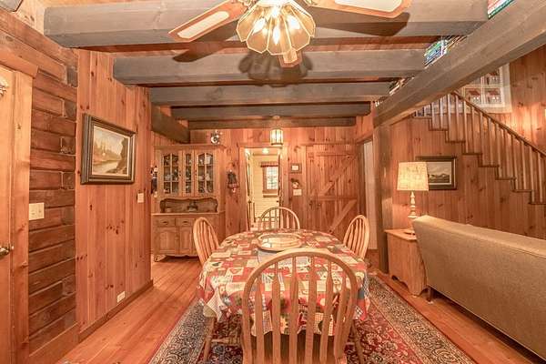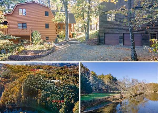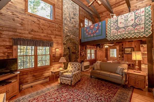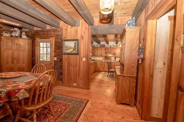 Welcome to a once-in-a-lifetime opportunity to own a truly extraordinary log home nestled in complete privacy with over 500 feet of pristine New River frontage. Located in beautiful Mouth of Wilson, VA, this handcrafted home is a true sanctuary, built to last with a poured concrete foundation for both the home and the garage. Offering 2,035 sq ft of comfortable living space, the home features 4 spacious bedrooms and 3 full baths across two stories and a partially finished full basement. The living room is anchored by a stunning stone fireplace outfitted with a woodstove, creating a cozy and timeless atmosphere. Complementing the warmth of the home, the kitchen is adorned with custom wormy chestnut cabinetry-a rare and beautiful touch. The basement woodstove has been ducted throughout the main level, providing additional efficient heat. Much of the furniture is negotiable, making your move-in a breeze. The two-car garage is a standout feature on its own, offering two additional stories above that are ready for your vision-whether as a workshop, expansive storage, or finished into a two-story apartment or second home. For guests or income potential, a charming bunkhouse/cottage awaits down by the river. Completely private from the main residence, it boasts its own power meter, well, septic system, and full bathroom. It's the perfect AirBnB or VRBO rental with unparalleled riverfront tranquility. The land itself tells a story of thoughtful stewardship. In 1987, the forestry department planted approximately 14,000 pine trees across the property, ensuring lasting privacy. Alternatively, you can selectively harvest for breathtaking long-range views. With multiple wells and endless natural beauty, this property offers a rare blend of self-sufficiency and serenity. Original owners have lovingly maintained this magical retreat, and now it's ready for its next chapter. Don't miss your chance to own this private, riverfront paradise straight out of a storybook.