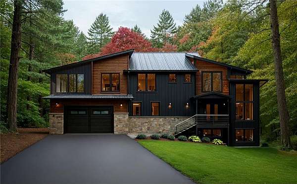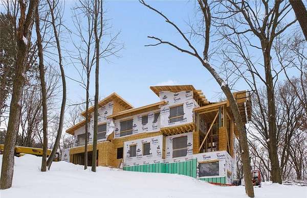 Welcome to 305 N Shore Drive W, a secluded and sophisticated retreat by Omni Custom Builders. Set on 2.41 private acres, this estate offers 6 bedrooms, 6 bathrooms, and 6,063 sq ft of modern, organic design just minutes from Lake Minnetonka. It perfectly blends modern, upscale rustic charm with luxurious living. The home ensures privacy with scenic wooded views and features seven garage stalls--five attached and two detached. Inside, the main level boasts a majestic two-story Great Room with an 18-foot ceiling, a cozy fireplace, and expansive windows. The chef's kitchen includes commercial appliances, a large pantry, and a scullery, ideal for entertaining. An oversized mudroom offers lockers, a window bench, and ample storage. Additional spaces include an elegant foyer, sunroom, sundeck, formal dining room, and a 1.5-story den surrounded in floor-to-ceiling glass windows. The upper level features a luxurious Primary Suite with a dual-sided fireplace, sitting room, rooftop deck, and spa bath, along with three more bedrooms, each with an ensuite bath and walk-in closets. A vaulted bonus room and oversized laundry complete the upper floor. The walkout lower level is perfect for leisure, featuring a theater/golf simulator room, rec room, wet bar, wine nook, an additional bedroom, and an exercise room (6th bedroom). Curated by a professional designer, the home embraces a sleek, modern aesthetic with natural materials. Conveniently located near top amenities such as the Luce Line Trail and Burl Oaks Golf Course, this home is part of the esteemed Westonka Schools.