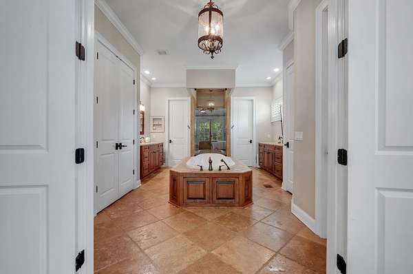 - Garden Tub Roman Tub, High Ceilings, Hot Tub Spa, Jetted Tub, Pantry, Primary Downstairs, Split Bedrooms, Stall Shower, Tray Ceilings, Vaulted Ceilings, Walk In Closets