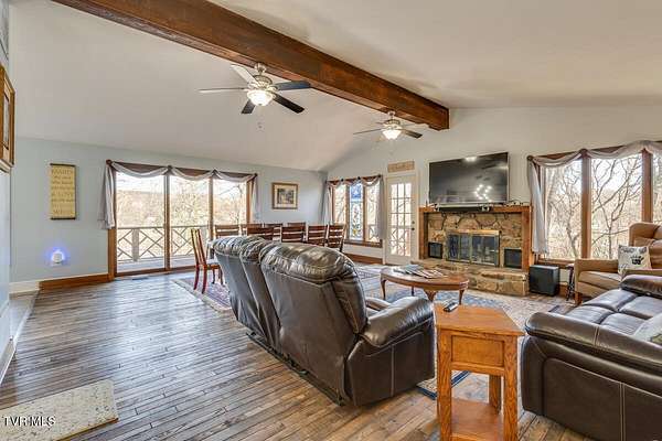 Beautifully situated in the coveted Ridgefields subdivision, this custom-built 4-bedroom, 4-bath home offers 3,608 sq ft of living space on a private, wooded 1.85-acre lot at the end of a quiet cul-de-sac. Was well a outdoor living shines with multiple decks for relaxing or entertaining, a sparkling pool, and a soothing hot tub-all surrounded by mature trees that create a private, resort-like atmosphere. Built in 1978, it's filled with charm and character, showcasing a cedar exterior, soaring cathedral ceilings, and walls of windows that flood the home with natural light while capturing peaceful views. The spacious floor plan provides both comfort and flexibility, with generous living areas ideal for entertaining or everyday living. Recent updates-including new carpet, fresh interior paint, and modern appliances-blend seamlessly with the home's timeless design. Kingsport's most desirable and established neighborhoods, this property offers the perfect balance of privacy and community. Don't miss this rare opportunity to own a truly distinctive home in Ridgefields-one that must be seen to be fully appreciated! *Equal Housing Opportunity *All information obtained by Third Party Resources*Agent/Tenant to verify all information to be correct.*