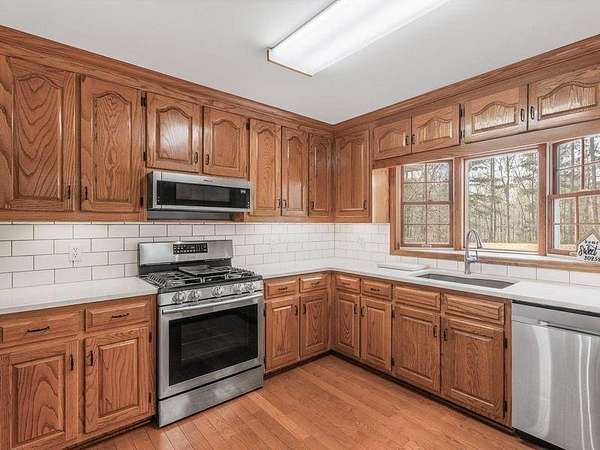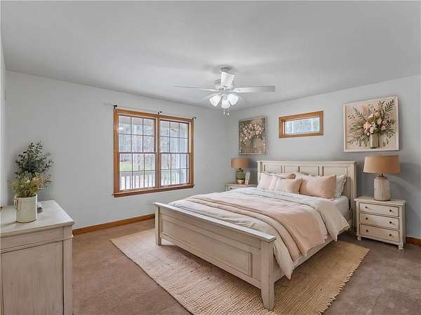 Situated on a private five-acre estate, this beautiful property offers a rare opportunity to lease a home surrounded by natural beauty and modern amenities. Step onto the expansive rocking chair front porch and take in the views of the meticulously landscaped front yard. Perfect for enjoying your morning coffee, watching a deer family, or unwinding after a long day, this serene space sets the tone for relaxation. As you enter the home, you'll be greeted by a spacious great room adorned with a cozy fireplace, ideal for gathering with loved ones on chilly evenings. Adjacent is a separate formal dining room, perfect for hosting family dinners and special occasions. The heart of the home lies in the well-appointed kitchen, featuring ample cabinets, stainless steel appliances, and solid surface countertops. With views of both the front yard and the breakfast area, this space seamlessly blends functionality with charm. Glass doors lead out to the expansive party deck, overlooking the private backyard and providing the perfect backdrop for entertaining guests or simply enjoying the tranquility of nature. The master bedroom suite offers a peaceful retreat, complete with an ensuite master bath boasting a soaking tub, separate shower, and a generously sized walk-in closet. Two additional secondary bedrooms offer plenty of space for family or guests. For added convenience, the unfinished basement provides ample storage space, while an outside utility building offers even more room for storing outdoor equipment or tools. With a quarter acre fenced-in area for pets to roam freely and explore, this property truly has it all. Perfect for those with a green thumb or those simply seeking a peaceful retreat, the garden features raised beds ready for planting your favorite herbs, flowers, or vegetables. Don't miss your chance to lease this exceptional home and start living in your own private sanctuary. This is a no smoking property. One small pet may be considered. Contact us today to schedule a viewing.