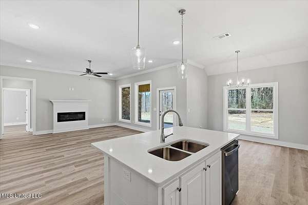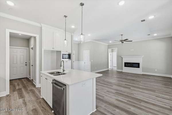 Thoughtfully designed new construction home on a quiet cul-de-sac lot in New Haven, situated on approximately 1.88 acres and offering 4 bedrooms, 2 baths, and 1,920 square feet of well-planned living space. The inviting foyer with coat closet opens into a spacious living area highlighted by large picture windows, an open layout, and a sleek modern electric fireplace that anchors the space. The kitchen is both functional and stylish, featuring a large island, ample cabinetry, quartz countertops, built-in microwave, gas range with griddle, walk-in pantry with coffee bar area, and a nearby laundry room complete with built-ins and a hanging rod for added convenience. The private primary suite features a generous bedroom with a semi-vaulted ceiling and a spa-like bath offering double vanities with extended counter space, abundant storage, a custom tiled shower, soaking tub, and a walk-in closet with built-ins. On the opposite side of the home, three additional bedrooms share a bath with dual vanities and a linen closet, providing comfort and separation for guests or family members. Enjoy outdoor living on the covered back patio with ceiling fan, overlooking a large lot with wooded views that provide added privacy. Additional highlights include an all-brick exterior, architectural shingle roof, tankless water heater, luxury vinyl plank flooring throughout, LED lighting, quartz countertops in the kitchen and baths, and stylish finishes and fixtures that make this home both durable and beautiful. New Haven is a beautiful new subdivision in Rankin County, located just outside the city limits, giving you the perfect blend of privacy and convenience. Each home sits on a spacious lot of over 1.5 acres, allowing for plenty of room to spread out. If you've been searching for a property that offers a large, mostly wooded setting with natural surroundings and extra elbow room, this community is a must-see. DIRECTIONS: For GPS/Maps, enter 1175 Sanctuary Drive, Brandon, MS 39042. This address will guide you to the entrance of New Haven (New Haven Lane). From Hwy 80 in Brandon, head south on Hwy 18 for approximately 8.5 miles. Turn right onto Sanctuary Drive. Continue about half a mile, and New Haven Lane will be on the left, which is the entrance to New Haven. Go all the way down to the end and you will run into Stronghold Drive - Take a right and the house is down on the right in the cul-de-sac