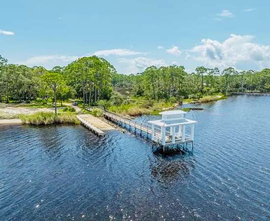 From Hwy 98, turn onto N Bay Shore Dr. In 1.9 miles turn left onto Grand Bay Dr to the entrance gate. In 350 ft turn right onto Sweet Bay Cir. The lot is at the end of the cul-de-sac.