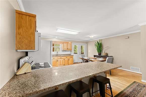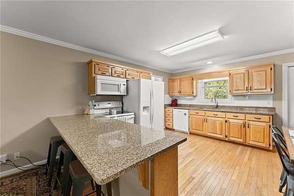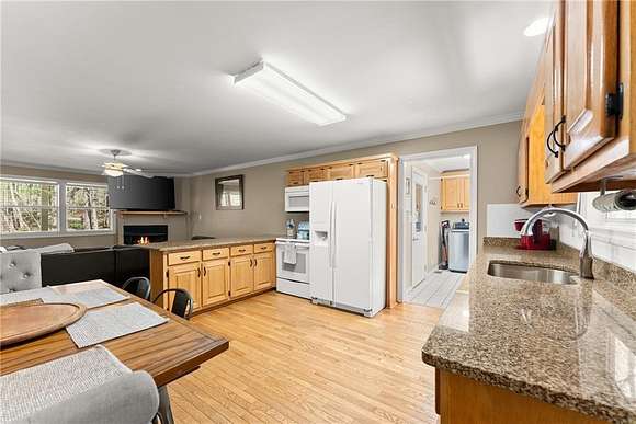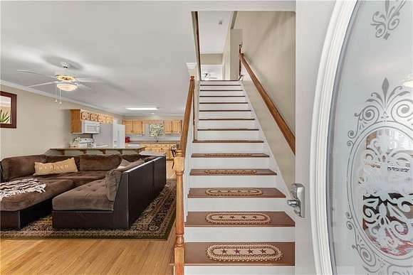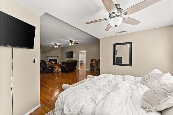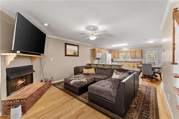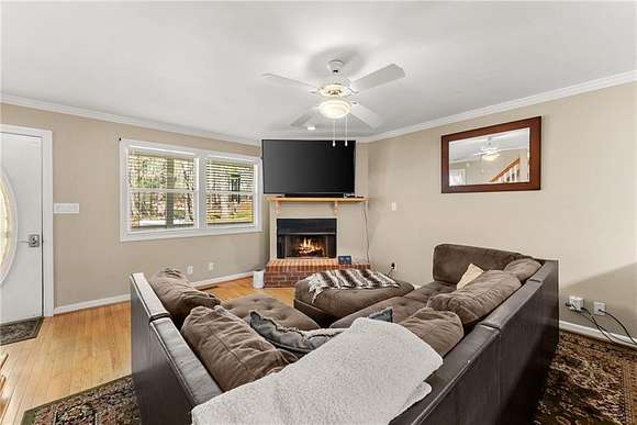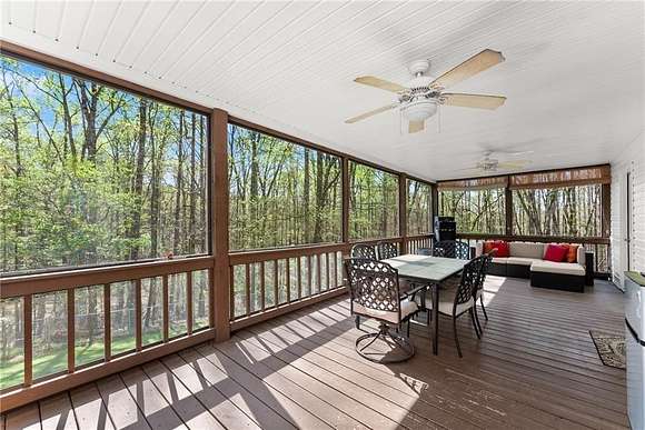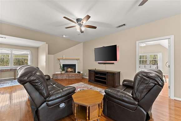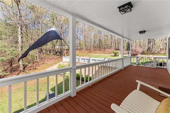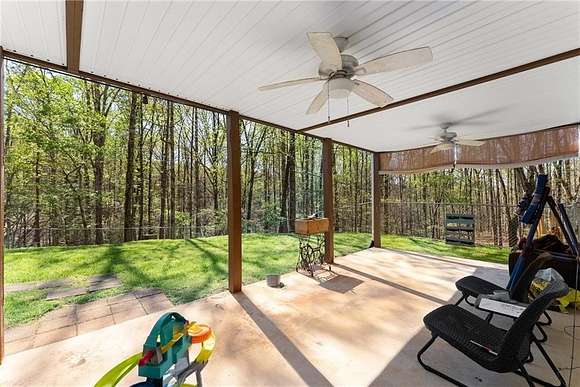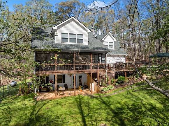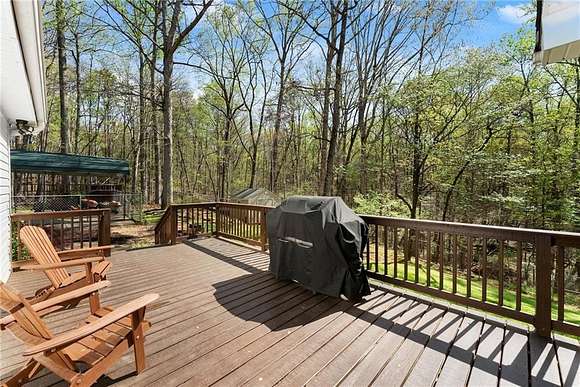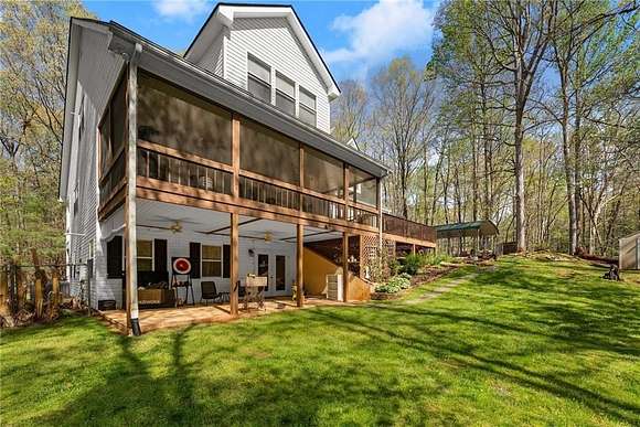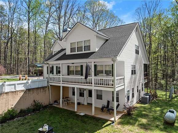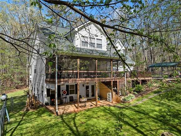 Nestled on a serene 2.67-acre wooded lot, this charming 4-bedroom, 3-bathroom home offers a tranquil retreat from the hustle and bustle of everyday life. Built in 1996, the residence boasts a spacious 2,240 square feet of living space, providing ample room for comfortable living. The inviting rocking chair front porch welcomes you into an open floor plan featuring hardwood floors throughout. The main level showcases a modern kitchen and a cozy living room complete with a fireplace, creating a warm and inviting atmosphere. Upstairs offers a true master retreat with a sitting area and fireplace, 2 huge walk in closets and beautiful master suite. The finished basement adds valuable living space, including 2 bedrooms and full bath, ideal for guests or multi-generational living. The expansive screened, covered back porch is perfect for entertaining or simply enjoying the serene surroundings. Additional features include a two-car garage and carport, providing ample parking and storage options. Located in a peaceful setting, this property offers a private and wooded retreat while remaining conveniently close to local amenities and attractions. The large lot provides potential for outdoor activities and future expansion. This home is a true gem, combining comfort, style, and tranquility in one remarkable package