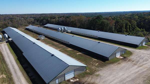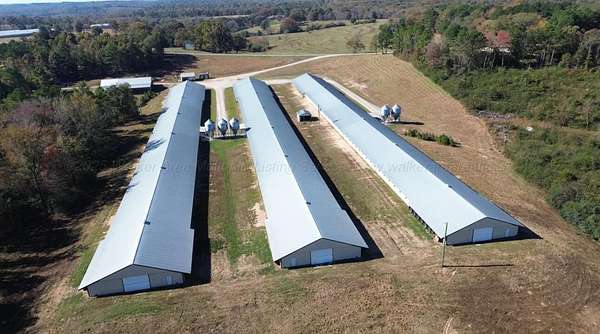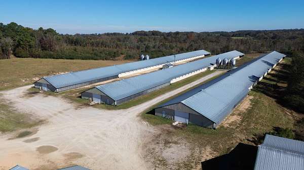 Est $12,453/moRobinson Broiler Farm - 3-House Turnkey Operation on 82+/- Acres | Hackleburg, AL Proven income-producing poultry farm with a beautiful home and modern infrastructure! Robinson Broiler Farm is a fully operational 3-house broiler operation located in Hackleburg, Alabama. The farm includes three 54′ 600′ MEGA houses built in 2018, a custom 3,400 +/- sq ft brick home (built 2011), and 82 +/- acres of