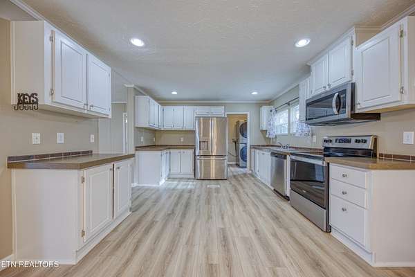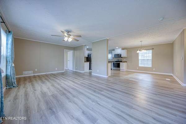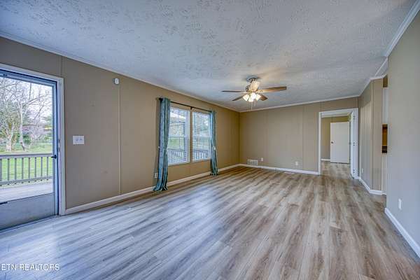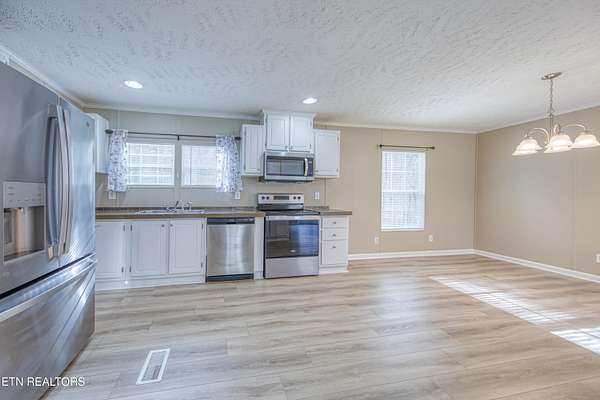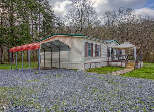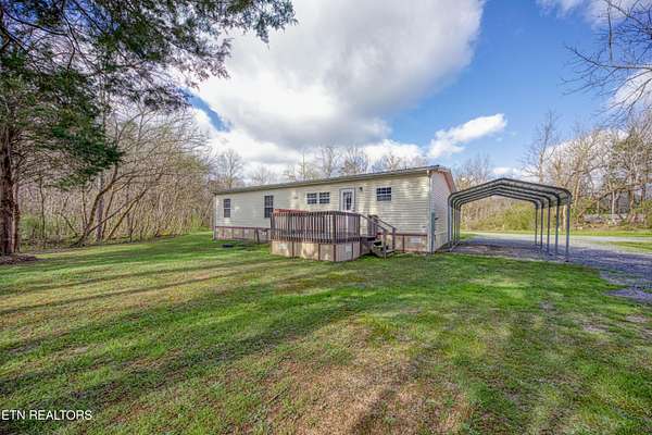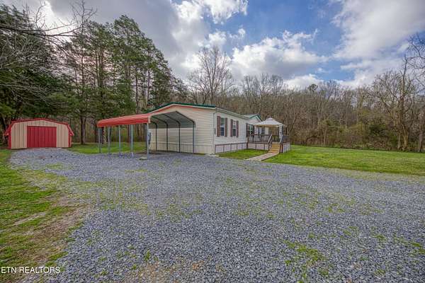 Beautifully maintained 3-bedroom, 2-bath home on 7.56 acres in Lenoir City, offering a rare blend of updated interior finishes, privacy, and highly desirable usable land. This well-kept home features a split bedroom floorplan, expansive open living area, and modern LVP flooring throughout with no carpet, creating a clean, inviting interior with a spacious and functional layout. The kitchen is equipped with newer stainless steel appliances, including refrigerator, range/oven, microwave, and dishwasher, all of which remain. Washer and dryer also convey for added convenience. The primary suite also features a new large soaker tub, adding comfort and appeal to the private owner's bath. Outside, the property continues to impress with a metal roof, carport, new skirting around the entire home, and a large storage shed/workshop. Newly cleared side and rear yard areas, along with a large cleared usable yard beside the home, provide exceptional outdoor space for entertaining, gardening, recreation, or future building possibilities. The private backyard is framed by mature trees, and just through the woods at the rear of the property you'll find a peaceful creek. You could extend the yard back to the creek side, enhancing the peaceful natural setting. Acreage with this level of usability and privacy is becoming increasingly difficult to find in this area. There are so many possibilities with this one.