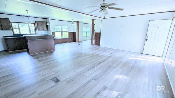 Welcome to Your Country Retreat! Nestled on a serene 2-acre lot, this charming 4-bedroom, 2-bathroom home blends modern comfort with the beauty of nature. As you approach the property, you'll be captivated by the lush, wooded views that create a picturesque and peaceful ambiance. Step inside to discover fresh paint and new luxury vinyl plank flooring that flows seamlessly throughout the open floor plan, enhancing the inviting atmosphere. The spacious living area transitions effortlessly into a bright kitchen featuring a center island and plenty of cabinetry for all your storage needs. The kitchen/dining area combo makes it ideal for entertaining guests while a cozy den with a fireplace provides additional space to unwind or enjoy quiet evenings at home. Additionally, the plentiful windows flood the space with natural light, adding to the overall warmth and welcoming vibe. The large primary suite is a true sanctuary complete with a spacious walk-in closet and a generous ensuite bath complete with a double sink vanity, walk-in shower, and a luxurious soaking tub. Additionally, the other well-sized bedrooms offer comfortable accommodations for guests or can easily be transformed into a home office to suit your lifestyle needs. Take a moment to relax on your charming front deck, sipping morning coffee while soaking in the tranquility of your private surroundings, accompanied by the soothing sounds of nature. This home is more than just a living space; it's a lifestyle choice that embraces peaceful country living. Don't miss the opportunity to own this private escape in the woods, where serene landscapes await you. Make this beautiful property your own and enjoy the ideal balance of comfort and nature. CALL and schedule your showing TODAY and step into a world of beauty and tranquility--your country living dream is just a visit away! Buyer to verify all information during due diligence.