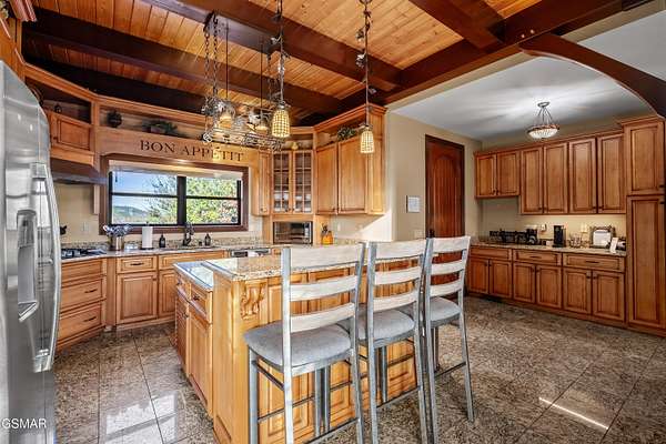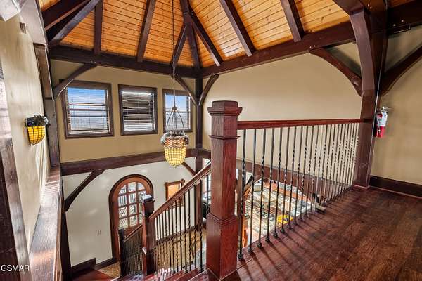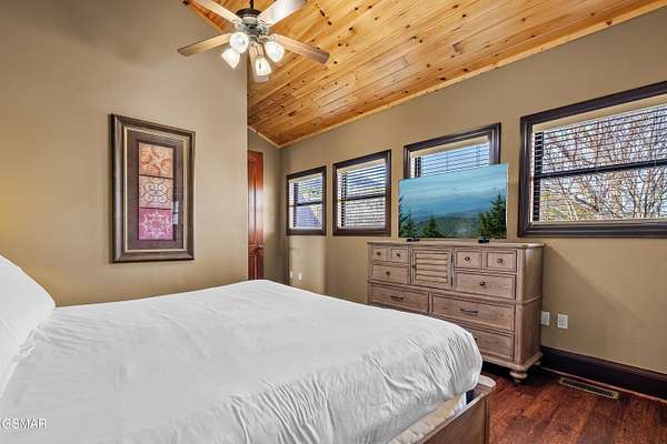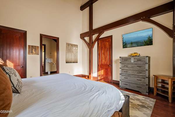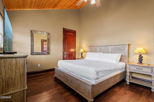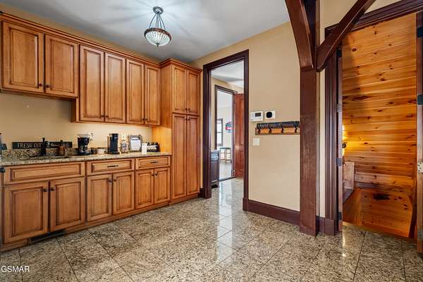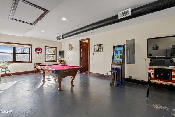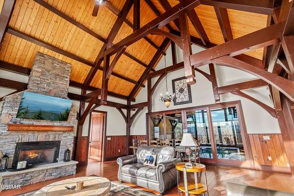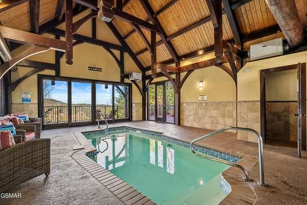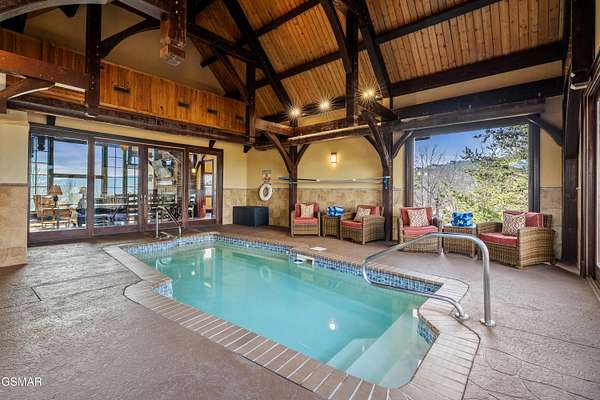 Luxury 5 Bedroom Mountain Estate w/ Indoor Pool in The Summit on Bluff Mountain Located within the prestigious, community of The Summit on Bluff Mountain, this exceptional 5-bedroom luxury mountain home offers over 5,000 square feet of refined living space and an unparalleled level of privacy, prestige, and panoramic Smoky Mountain views. Just minutes from Gatlinburg and Pigeon Forge, ownership here is reserved for those seeking both convenience and exclusivity in one of the region's most coveted addresses. Designed to deliver a true resort-style experience, the home features a PRIVATE INDOOR POOL, state-of-the-art theater room with reclining seats, game room with POOL TABLE & ARCADE GAMES, and a MOUNTAIN VIEW OUTDOOR HOT TUB, all curated to elevate both owner enjoyment and guest experience. Every element reflects a commitment to luxury living in the heart of the Smokies. The interior showcases soaring vaulted ceilings, expansive oversized windows, and a bright open-concept layout that seamlessly blends elegance and comfort. The gourmet kitchen is both stylish and functional, complete with full-size appliances, granite countertops, a generous island, bar seating, and a dedicated coffee station. Adjacent dining flows effortlessly into the main living area, where plush seating, a statement fireplace, and a large smart TV create a warm yet upscale gathering space. A lofted second living area provides additional flexibility for entertaining or relaxing in style. This home comfortably accommodates large groups with five spacious bedrooms, including four king suites, each with its own private ensuite bathroom. A thoughtfully designed bunk room with a twin-over-queen bed is ideal for children or additional guests. High-end finishes, smart TVs, ceiling fans, and attention to detail are found throughout. Outdoor living is equally impressive, featuring covered porch seating, a private firepit area for evenings under the stars, and sweeping mountain vistas that define life atop Bluff Mountain. Ideal as a luxury Smoky Mountain retreat, a high-end vacation rental, or a legacy property within an elite mountain enclave, this home represents a rare opportunity to own in The Summit on Bluff Mountain-where exclusivity, luxury, and performance converge. Schedule your private tour and experience elevated mountain living at its finest.