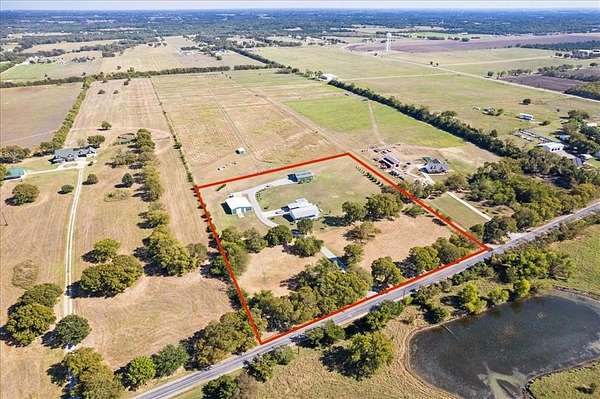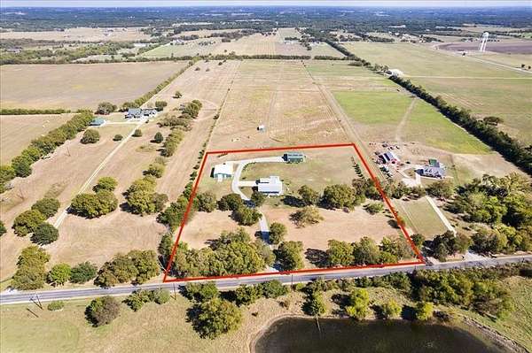 Ranch house, barndominium and working shop (including water and electric) with 5 acres or more. Whether you're needing to get away, get off the grid or get your homestead going, this property checks all the boxes. The ranch house features cement board siding, foamed insulation throughout with wood, LVP, ceramic tile flooring and a tankless water heater. The ranch house was freshly remodeled in 2023 including a Trane HVAC unit. Barndo is roughly 1900 square ft hosting a kitchen, two bedrooms, two full bathrooms, office or art room as well as a recreational room upstairs. Barndo has CAT 6 cable, tankless water heater and new Trane HVAC unit installed in 2021. The 1500 square ft workshop features 3 roll up doors with 2 automatic door openers and an RV hookup. Bring your animals and dreams out to this peaceful ranch. Rare find in Van Alstyne School District.