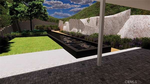 The sale includes thoughtfully crafted architectural plans (not yet approved), envisioning a sophisticated modern home with natural stone and wood elements, expansive indoor-outdoor living areas, and a detached guest casita/ADU. The proposed design highlights en-suite bedrooms, a wine room, a great room with slide-away pocket doors, and generous terraces designed for entertaining and relaxation.