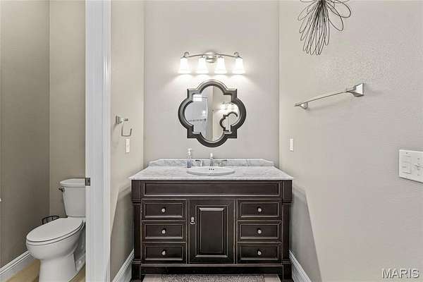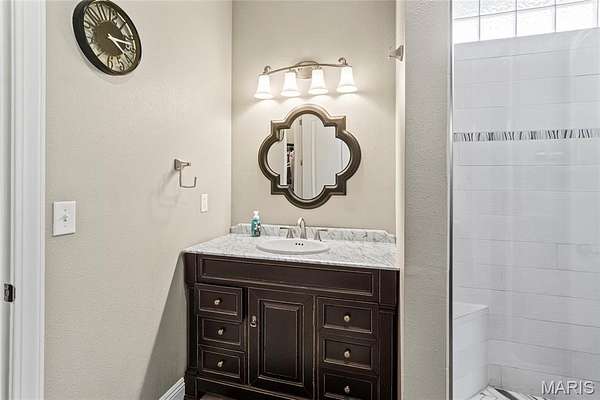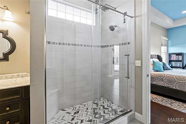 The primary suite offers a spa-like retreat with elegant marble vanities and refined finishes throughout the master bath. Each additional bedroom and bathroom is generously sized, offering comfort and privacy for family or guests.