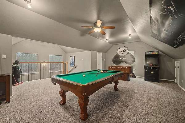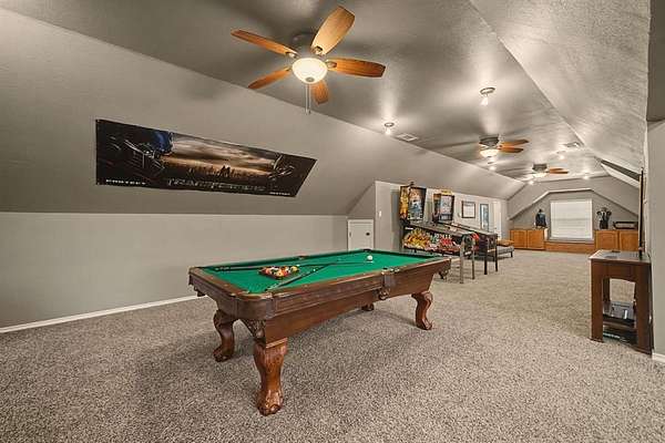 Upstairs, enjoy a large family room and a dedicated media room complete with built-in speakers, a 90-inch screen with projector, theater seating, built-in microwave and refrigerator. All arcade games, pool table and media chairs convey, creating a fully turnkey entertainment space.