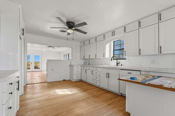 Incredibly unique farm house nestled out in the middle of the country. Want to see the sunrise and sunset without obstructions? This home features 2 private patios off the master suites and a private balcony on the 2nd story for those early morning coffee sessions or late night rocking chair moments. Imagine enjoying watching a thunderstorm roll in from these views! This home was originally built in 1910 and has been thoughtfully remodeled and carries the kind of character that can't be recreated. Where history and modern comfort meet in the absolute best way. You'll notice in the details: some original but restored hard wood floors, tall ceilings and lots of windows to let the natural light in. Some vintage touches are the crown molding, built-ins, the staircase that still could tell stories of years past. At the same time, the updates make daily living effortless. The kitchen and bathrooms have been refreshed with modern finishes, updated fixtures, some flooring, cabinets and hardware, ceiling fan and faucets without stripping away the homes soul. Fresh new texture and paint throughout as well. Beautiful 2 story house has 5 bedrooms, 4 bathrooms, office, 2 living areas and a dining area. The home is 3,271 square footage of pure bliss and privacy, has 2 wells (both have been serviced recently and 1 was drilled in 2016), roof was replaced in 2021 and septic replaced in 2022. Need to store an Rv and keep it protected from the west texas elements? Check out the awning on the west side of the property! Want to be safe in the event of our unpredictable weather? There is a storm shelter on the North side of the home and it is CLEAN! Last but not least, there is a 2 car garage to park your vehicles in as well. Please contact your favorite agent today and head out to check this out for yourself!