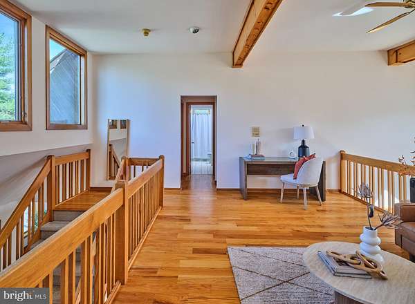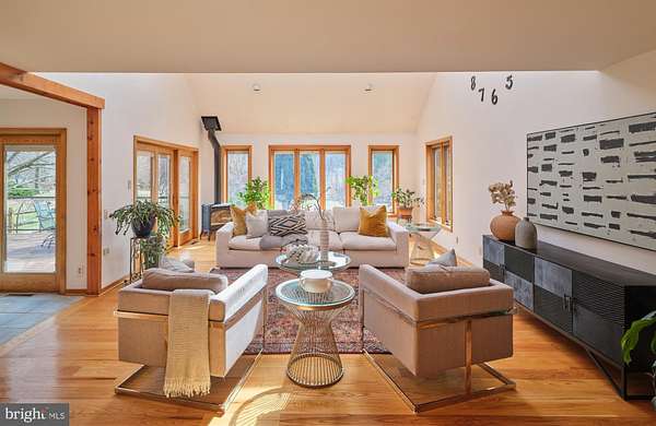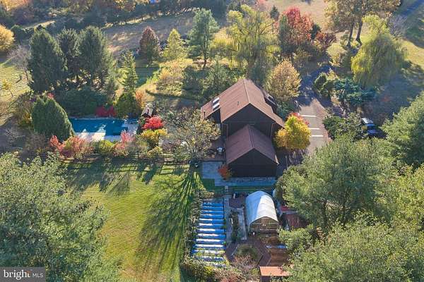 SECLUDED COMFORT, SUSTAINABLE SOPHISTICATION 4 Bedrooms | 3.5 Bathrooms | 5+Acres | Solar| Geothermal Energy. Tucked at the end of a long driveway, on over five pristine acres, the house stands as a masterclass in modernist contemporary architecture, updated for a future that demands intelligence alongside style. This Custom-built residence is thoughtfully designed for both intimate gatherings and grand entertainment. The kitchen, expansive great room and dining area easily accommodate a crowd. The Sun filled great room brings the outside in and is equipped with propane stove. The first-floor primary suite is a peaceful retreat with a spacious, light-filled bedroom and an ensuite bath with summer shower and winter shower/steamer. A soft, neutral palette establishes a sense of openness and harmony across the living, dining and kitchen areas. Panoramic views expand to 360 degrees from every window. Conveniently, from the kitchen and great room , there is access to a generous deck where you can watch the sunrise over your acreage,and is also ideal for outdoor dining. Stone steps lead down to a large bluestone patio and secluded pool with spa. The large eat-in kitchen features stainless steel appliances, spacious countertops and abundant cabinetry, delivering both timeless elegance and modern functionality. An airy loft above the great room provides flexible space and leads to three additional bedrooms and a shared bathroom. The fully finished lower level features an expansive rec room, an exercise room, private office/gaming room , generous closets and a full bath. An additional heat source is provided by a pellet stove. Engineered for energy efficiency and comfort, this residence utilizes this state-of-the-art geothermal system that leverages the earth's consistent underground temperature for both heating and cooling, significantly reducing utility costs and environmental impact. The integrated solar panel array is designed to meet virtually all of the home's electrical demand, feeding surplus energy back to the grid and further lowering the carbon footprint. High-performance Pella Design Series windows ensure year-round thermal stability and quiet interiors. Read oak wood floors are throughout. . Additional features include a whole-house UV water filtration system. There is an attached two car garage with ample loft space for all your storage needs. A dedicated level 2 EV charger is conveniently located in the garage. The Grounds consist of five plus acres and offer a diverse landscape of manicured lawn and native wildflower meadows. An array of dogwoods, maples, fruit and nut trees as well as ornamental grasses completes the picture. The Pool and spa area is surrounded by manicured landscape, providing privacy. Additional outdoor features include a Greenhouse, set in fenced garden, a large workshop, tractor shed, bike shed and lean to. Set back significantly from the road, the property provides seclusion while remaining minutes from New Hope and Doylestown. Located within the esteemed New Hope-Solebury School district. Just 70 minutes to New York City, one hour to Philadelphia and 35 minutes to Princeton. This is more than a home; it is a signature property designed for sustainability, comfort and efficiency.