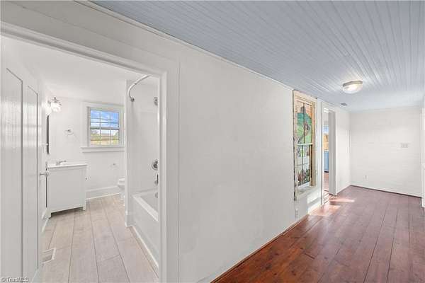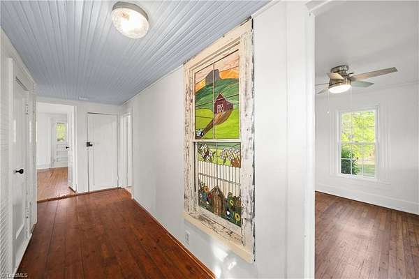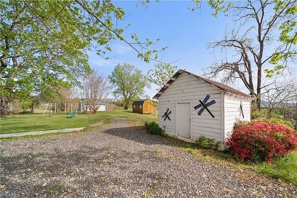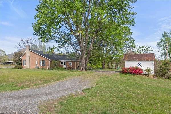 Charming brick farmhouse set against views of Pilot Mountain and the Sauratown range. Inside, you'll find a primary suite with bath and a spacious walk-in closet. The kitchen and dining area flow together easily, featuring a smooth cooktop, built-in microwave, and pantry. There's a nice balance of old and updated here-renovated bathrooms paired with original hardwood floors through much of the home. Upstairs, two finished attic rooms add about 300 square feet of flexible space (not counted in heated square footage), ideal for whatever you need next. The property offers generous outdoor space with garden areas, fruit trees, and two outbuildings. A recently constructed two-car garage includes a heated workspace with a separate entrance, ideal for a home office, studio, fitness area, or other needs. A well-rounded property that blends scenic surroundings, usable space, and thoughtful updates. Convenient to Highway 52 and a 20-minute drive to Winston Salem.