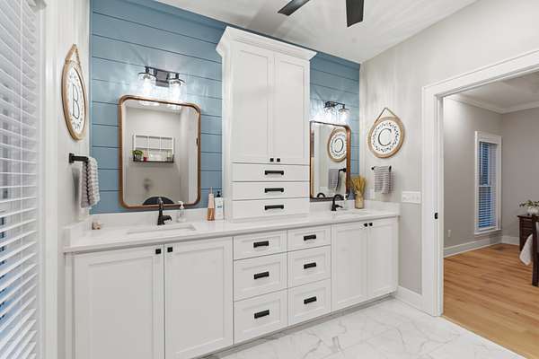 - Countertops: Elegant quartz countertops offer both beauty and functionality in the kitchen and bathrooms.