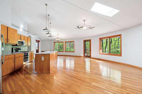 - Dishwasher, Disposal, Dryer, Electric Oven, Electric Range, Freezer, Ice Maker, Microwave, Refrigerator, Stainless Steel Appliance(s), Washer