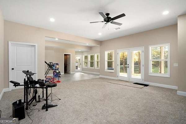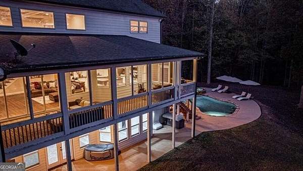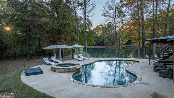 Discover exceptional craftsmanship and quiet country elegance in this custom-built, 5,200 sq-ft farmhouse-style estate, ideally positioned on 5.7 private acres in sought-after North Monroe, just 12 minutes to beautiful Downtown Monroe and 8 minutes to Hwy 316. Overlooking a serene 3-acre, fully stocked pond and surrounded by breathtaking seasonal foliage, this remarkable 5-bedroom / 4 bath residence offers upscale living with a lived-in warmth felt throughout the home. Special features include hardwood as well as brick flooring on the main, in-ground heated pool plus hot tub, expansive outdoor living spaces, professional landscaping, safe room in basement, oversized bedrooms, home office / flex room on main, dog washing station, laundry chute, abundant natural light, and incredible storage throughout. The chef's kitchen, complete with leathered granite countertops, gas range, breakfast area, butler's pantry with dry bar, and large walk-in pantry compliment the open-concept floor plan. The separate dining room seats 12+, allowing you to entertain the entire family. Living room, complete with a huge custom-designed stacked stone fireplace with wood storage nook underneath accommodates all of your large furniture, while the built-in bookcases allow you to display all of your favorite collectibles. Retractable glass doors open from the living area to a spacious screened-in porch, perfect for year-round enjoyment with picturesque pond views. Screened porch is perfect for a mounted tv to watch all of your favorite sports teams this fall. The owner's suite on the main level is a true retreat, showcasing tranquil views, a spa-inspired bath with a soaking tub, fully tiled walk-in shower with brick flooring & shower niches, double vanity, and a huge his-and-hers walk-in closet. Three additional large bedrooms are located upstairs with a shared full bath. The full, partially-finished walk-out basement provides even more versatility, offering a half bath (stubbed for an additional full bath), a safe room, and expansive unfinished areas ideal for storage, a home gym, or future expansion. With ample space, the basement could be finished to include two+ additional bedrooms and an additional full bath, all while maintaining stunning views of the pond. Outdoor living is unmatched. A wraparound terrace level leads to the pool area, where remote-controlled lighting and waterfall effects create a spectacular nighttime ambiance. The deep 3-car garage includes extra storage space, and the landscaped yard enhances the home's inviting appeal. Nestled in a quiet cul-de-sac with exceptional privacy, this property also offers a rare opportunity: the adjoining 23-acre parcel boasts a fully operational commercial horse farm, Wisteria Farms, and is available for purchase separately or together with the home. Combining the residence and horse farm creates an extraordinary 29+-acre equestrian estate that is truly a horse lover's dream. This home offers comfortable luxury, privacy, and functionality on every level: a one-of-a-kind retreat you simply must see to appreciate.