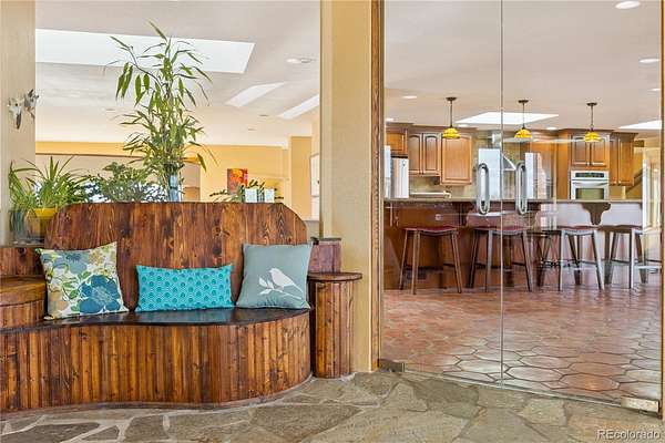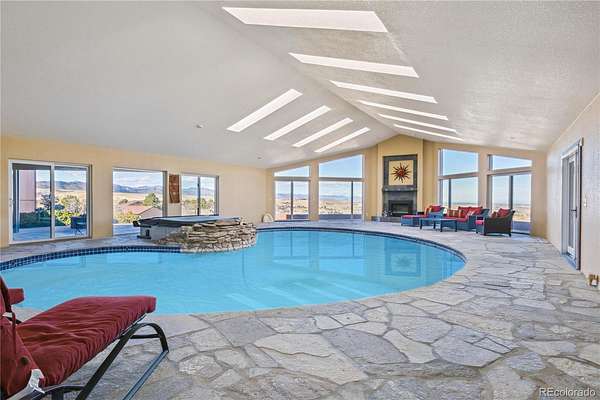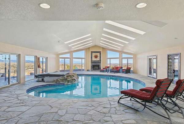 Perched on one of the highest elevations within desirable Indian Creek Ranch, the stunning Sacco Estate is situated perfectly on 5 acres at the end of a quiet cul-de-sac. A black iron gate opens to reveal this “one of a kind” 10,239 sq ft estate featuring hardwood floors, 3 fireplaces, skylights, breathtaking mtn & city views. For the true culinary enthusiast, the kitchen features Silestone quartz countertops, SS appls, island/breakfast bar, built-in desk, 55” high custom cabinets, amazing mountain views & downtown Denver city views. A unique aspect of this estate is its exceptional design, its configured to accommodate extended family w/two M-I-L suites, rental income or cater to multigenerational living through its distinct west & east wing separation. East wing has a mother-in-law suite w/soaring ceilings, stone gas fireplace, full-sized kitchen, nook, ¾ bath, laundry & separate main floor entry. You'll love the extraordinary pool & entertaining room, which is unlike any you've ever seen; featuring saltwater swimming pool, hot tub, dedicated bar, indoor sauna & cascading waterfall. Not interested in a pool? Convert this grand room into an indoor pickleball or basketball court, ballroom, sizable gym, whatever you desire! The BRs including the primary BR have en suite remodeled baths! You'll love the attached 3-Car garage & detached garage/barn w/room for 2 cars and 2 horse stalls w/paddocks. Newer windows & roof, Solar (paid for), 2 septic systems! Fire Hydrant off driveway - low insurance $! Community clubhouse, playground, equestrian arena & bridle path thru the neighborhood. Take an adventure up the canyon w/Pikes Natl Park, OHV riding at Rampart Range, world-class rafting & fishing. Sedalia offers a small-town vibe w/easy access to city amenities, shopping, restaurants & C470/I25. Sedalia homes run $300 - $450 a sq ft...this estate is $161 a sq ft! HOA, great schools, nice neighbors! Acquiring an estate such as this is truly a rare opportunity!