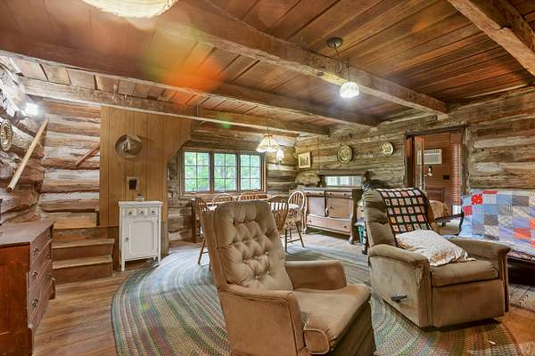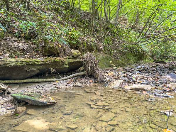 119 acres for sale in Hocking County, Ohio. This beautiful and tranquil property in the heart of the Hocking Hills features a log cabin originally constructed in the 1820s. The cabin was moved in 1971 from the road to its current site on the hillside. Dragging the logs carved out the present-day driveway. John Spofforth, a local sculptor and brickmason, created the new chimney. The cabin was expanded to include a dining porch and kitchen, and later a primary bedroom. The barn and corn crib were also moved and rebuilt to provide a workshop and guest accommodations. Then came electricity, a deep well, indoor plumbing, and a septic system. As the cabin became more livable, 50 years of growth and thousands of new plantings added to the splendor of the trees and wildlife. The deep spring-fed pond invites excellent swimming and fishing. This property provides an ideal place for quiet contemplation, reading, and hiking, as well as a venue for annual family get-togethers. It is an unparalleled opportunity for an experience of closeness to nature and the warmth of interaction with family and friends. Located just under 6 miles from Old Mans Cave, and not far from all the Hocking Hills amenities. This property features big mature woods loaded with white oak, red oak, and poplar. 78.9 acres of the property are protected by a Conservation Easement that ensures that the property will stay in its natural state, the way God intended, offering future generations the chance to experience an ecosystem that has nearly vanished from the region. Making this property not just a piece of land, but a living legacy. Current annual taxes are approx. $6715.00, and any mineral interest owned by the seller will transfer.