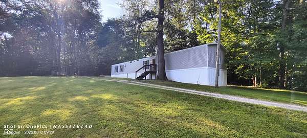 Private country living on 2.47 acres with water view, yard and trees, in this affordable completely remodeled manufactured home! This is a Clayton 2001 manufactured home that is 1280 square feet. Three Bedrooms, two full baths, new dishwasher, new oven/range, new refrigerator, new laminate flooring, new paint and MORE. Out your front door is a beautiful pond view and to the side is a smaller pond that is shared by you. There is a mini barn and natures surrounds you. Look at these photos and you will see this home and property is for you!