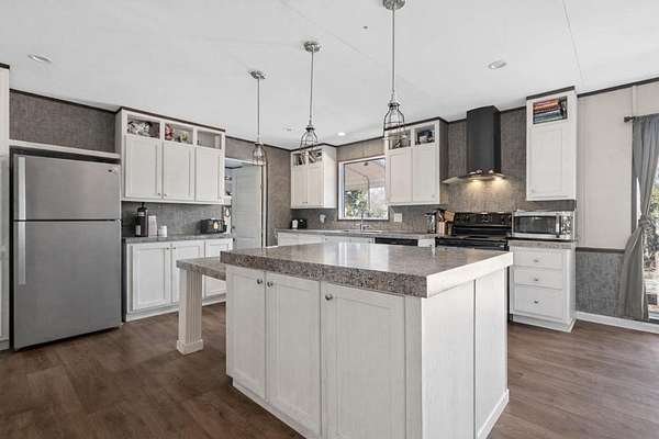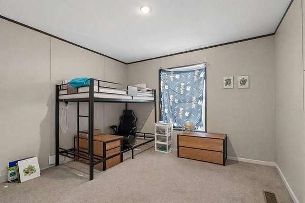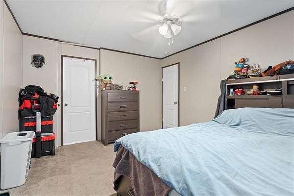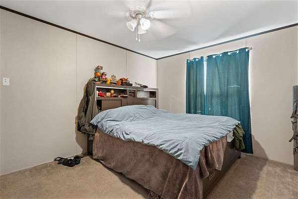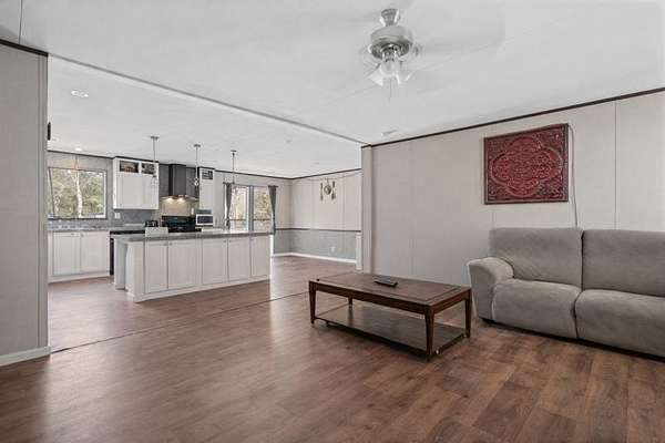 Spacious 3-bedroom, 2-bathroom manufactured home (2022 Champion Daytona) offering approximately 1,400 sq ft, situated on 6 beautiful acres. Property is partially fenced with a designated area ready for livestock. Inside, the home features an open layout with a large kitchen island, wood laminate flooring throughout the main living areas, and carpeted bedrooms for added comfort. One storage shed will remain with the property. Additional features include an extra 100-amp electrical hookup, providing added flexibility for future needs. Peaceful country setting with room to grow, work, or play.